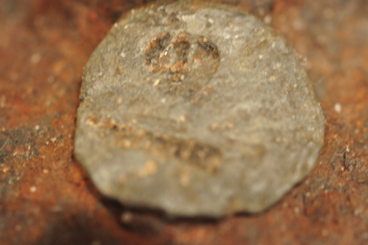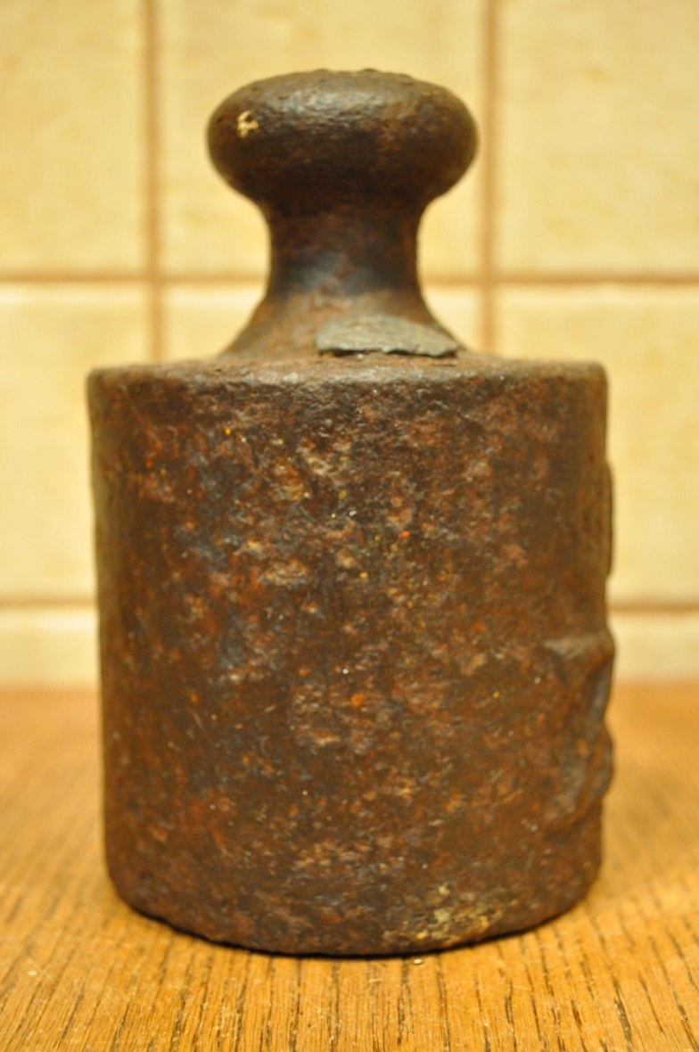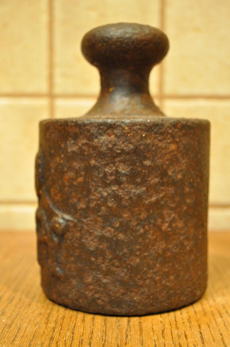 Сильно "съеденная", разборчивая подпись номинала назначения на корпусе гири: