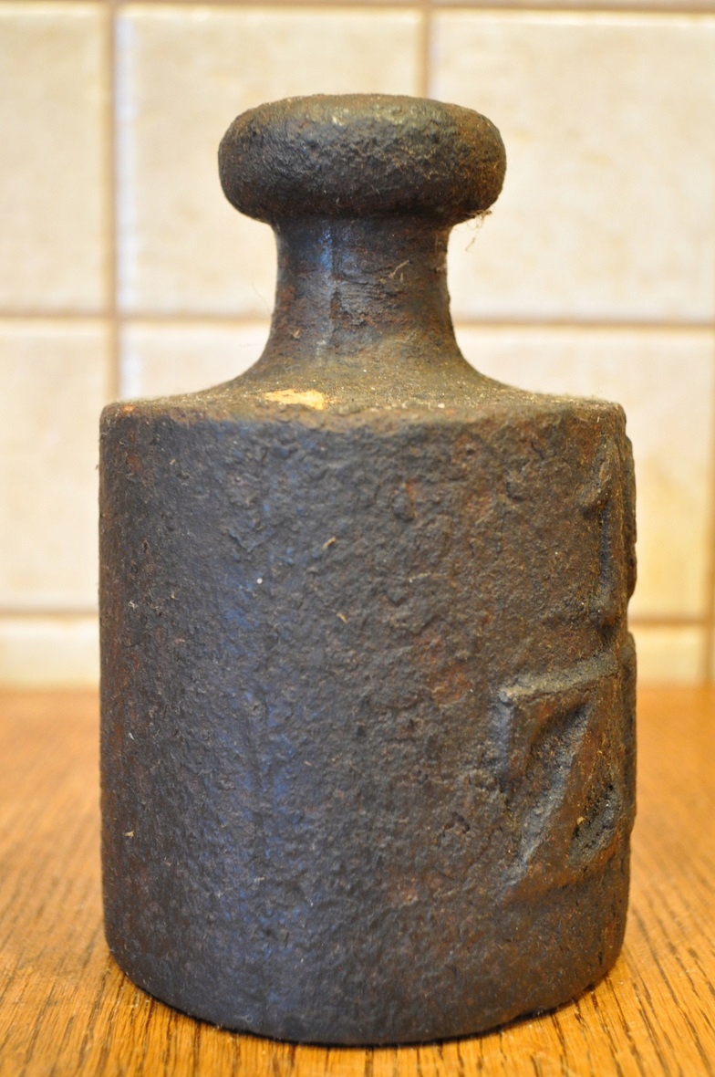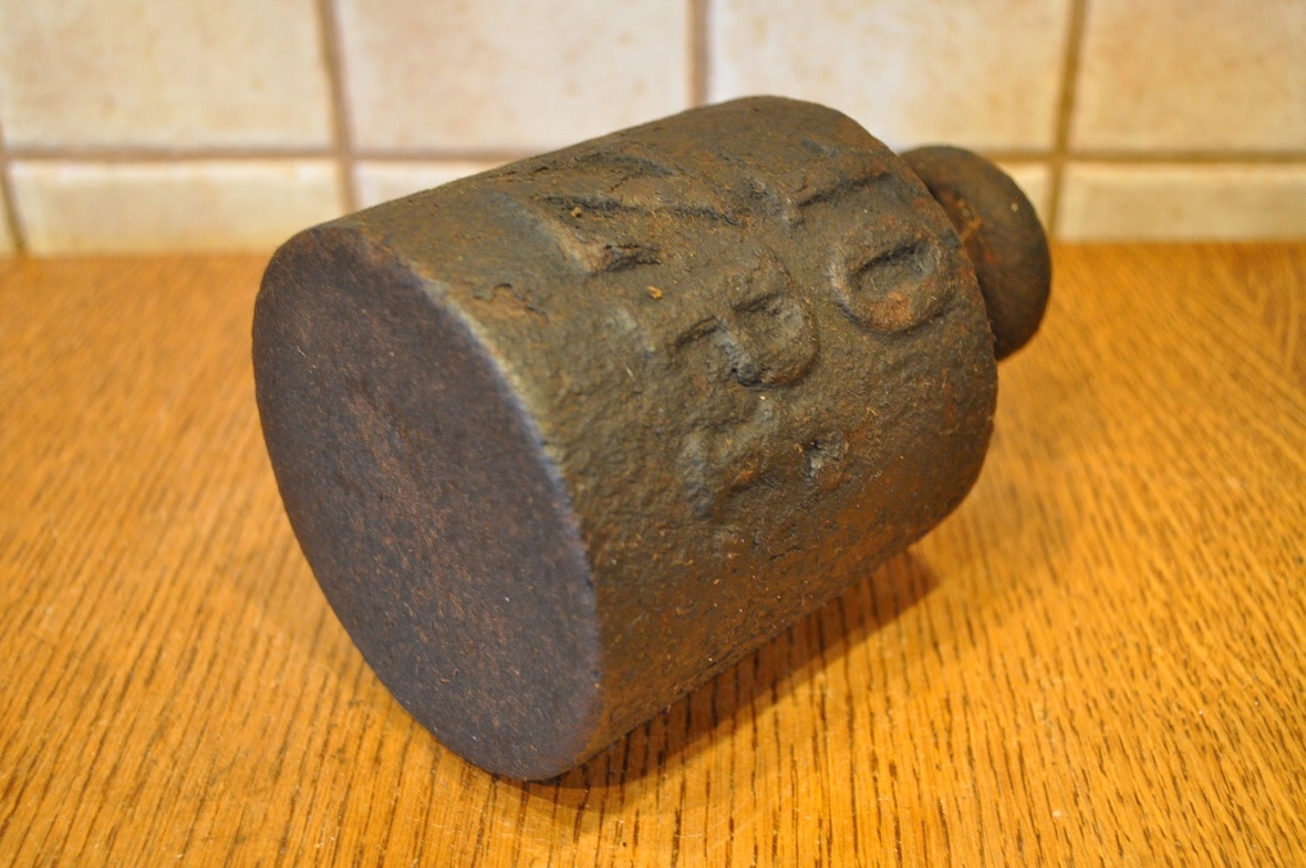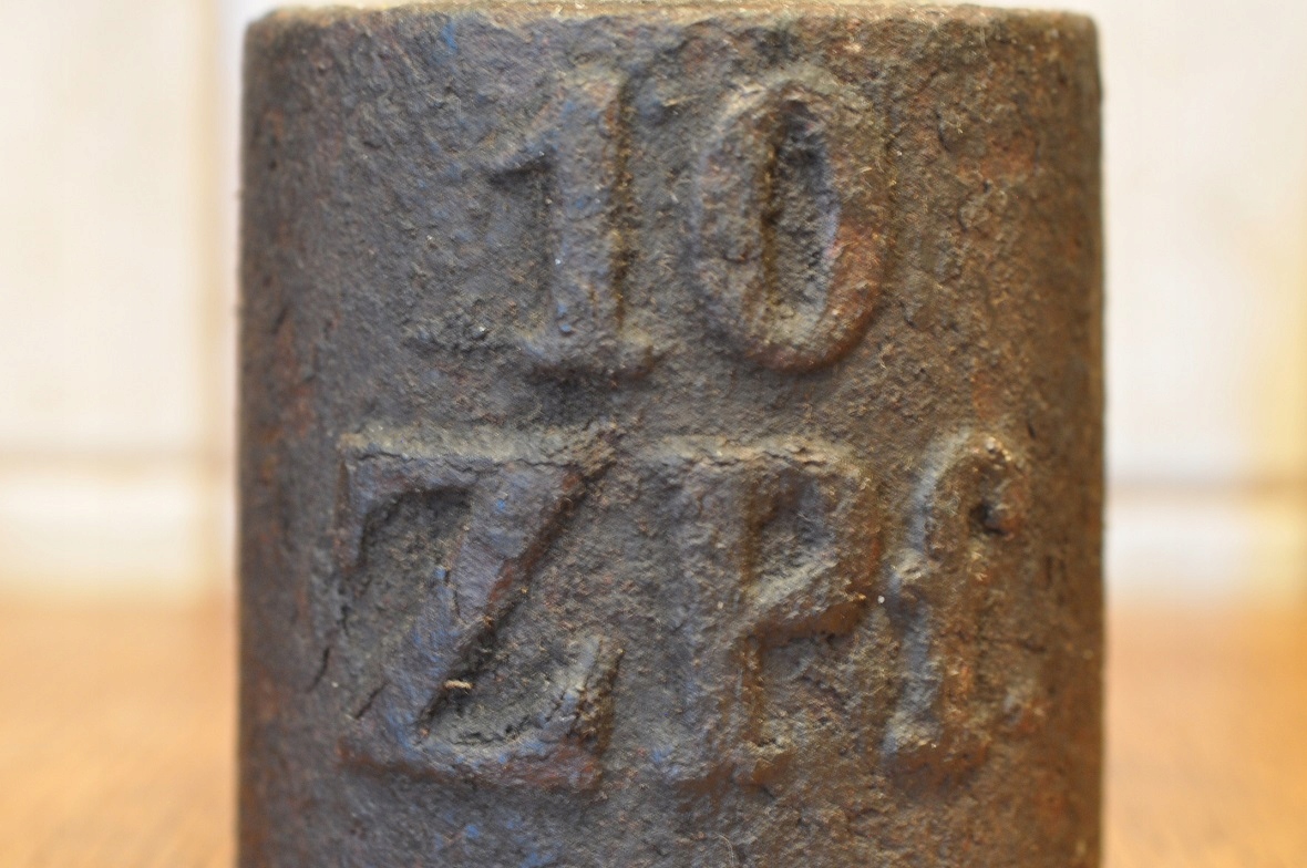Поверочное гнездо на воротнике гири заполнено свинцовой проверочной вставкой.