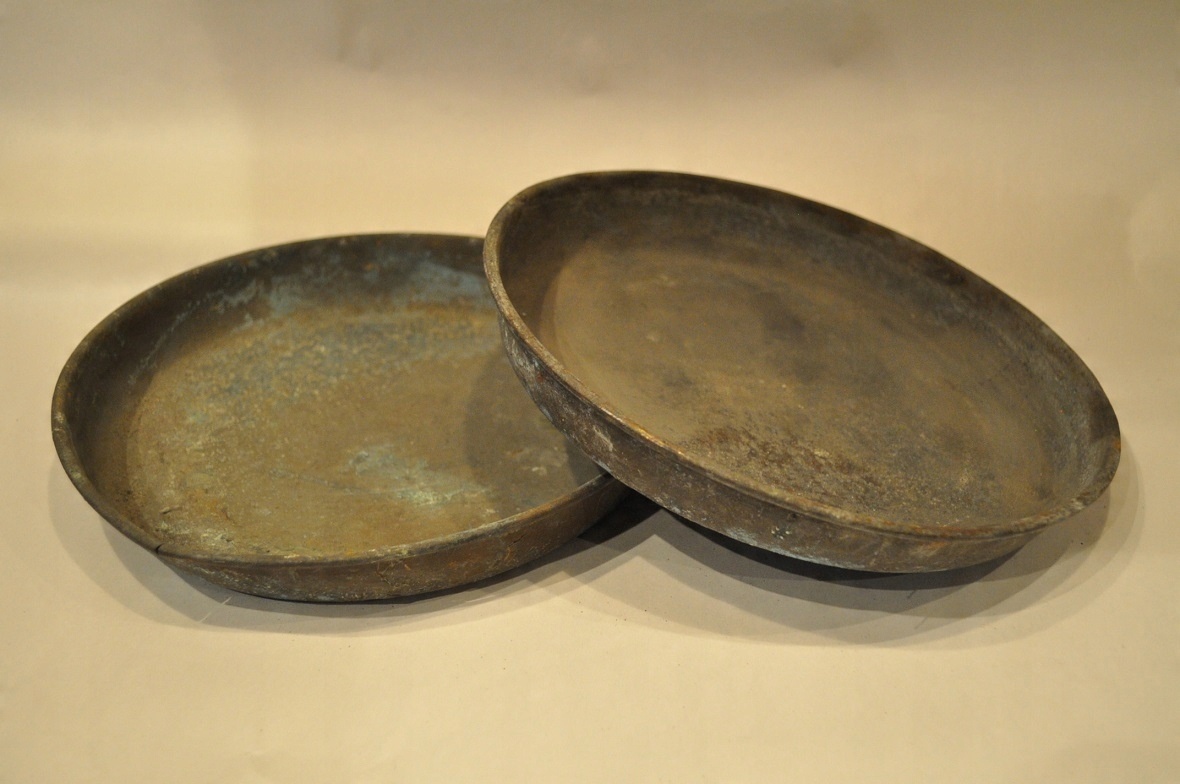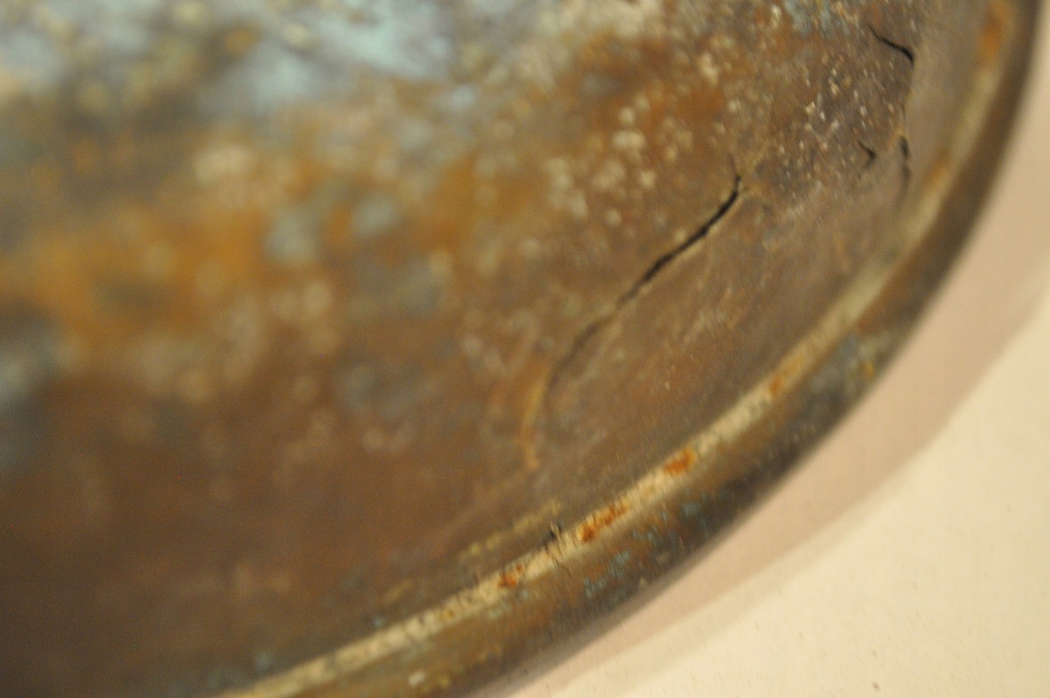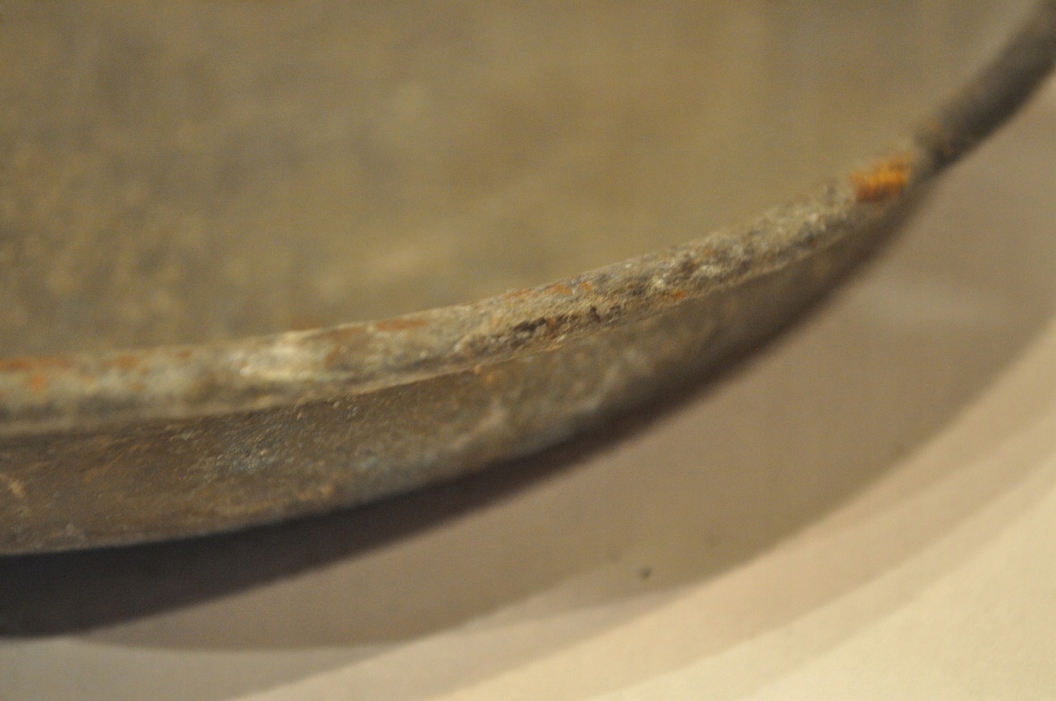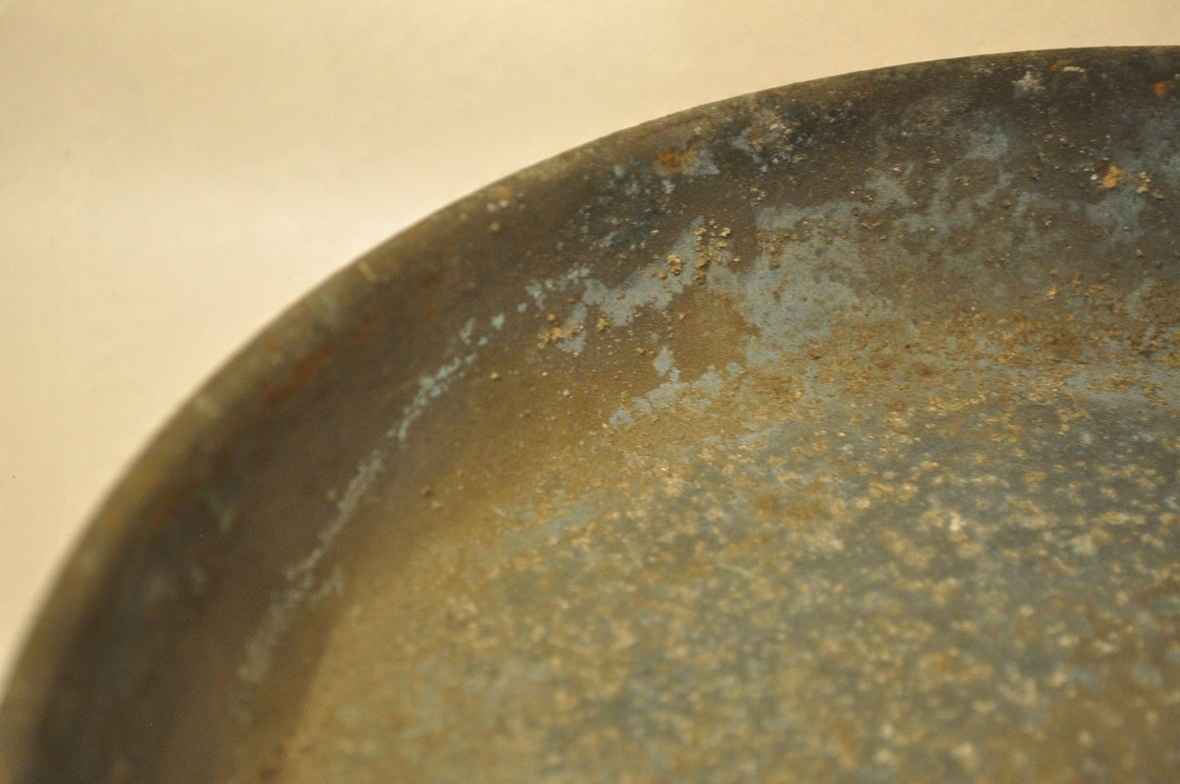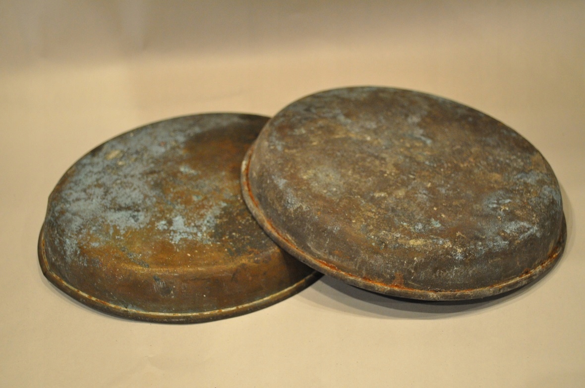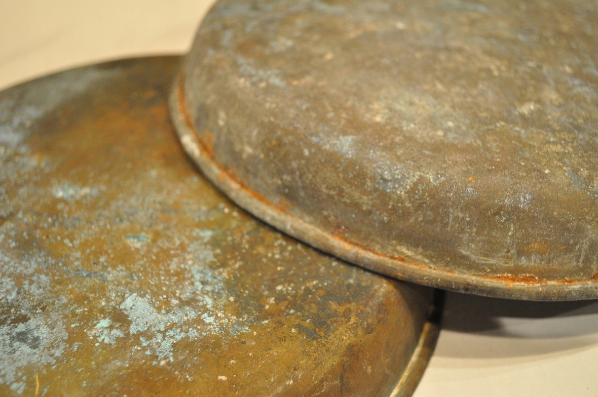 Сковороды не чистились - снаружи покрыты оригинальной, старой, темной патиной и рыжеватым налетом.