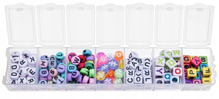 Удлиненный органайзер размером 15/3 см, наполненный модными акриловыми бусинами с буквами 6/7 мм