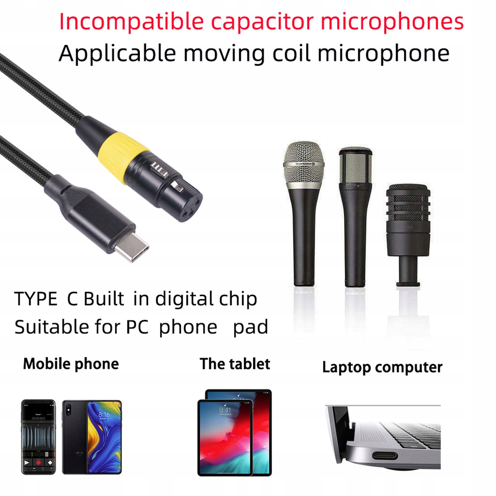 1. МОДЕЛЬ С ИНТЕРФЕЙСОМ: Микрофонный кабель Type-C предназначен для записи музыки, караоке и домашнего аудио с микрофона с 3-контактным разъемом XLR на компьютер или смартфон с портом USB Type-C.