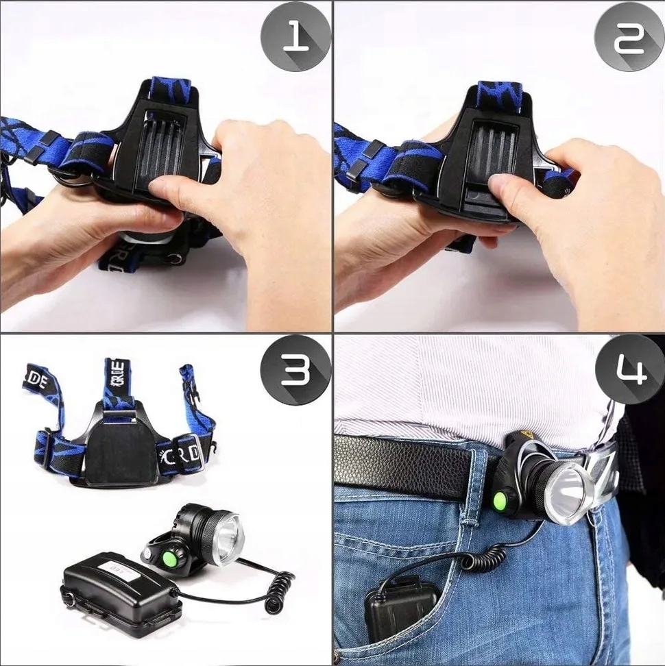 Фара CREE-XML-T6. Фонарик имеет очень мощный источник света - CREE-XML-T6 LED со сроком службы до 100 000 часов. Устройство питается от энергосберегающих 2 батареек типа 18650. (включено). Фонарик также водо- и ударопрочен. Переключатель защищен прочной резиной, а уплотнительные кольца защищают устройство от грязи и пыли. В комплект входят 2 зарядных устройства - сетевое на 230 В и автомобильное на 12 В. Линза фонарика имеет функцию ZOOM — плавно регулируемую. Благодаря функции ZOOM – т.е. регулировке фокусного расстояния объектива – мы можем настроить луч излучаемого света в соответствии с текущими потребностями – узкий и дальний луч света или широкий луч, освещающий большую территорию вблизи. Голову фонаря можно отсоединить и использовать самостоятельно как «прожектор» или, например, прикрепить к ремню. Фонарик на батарейном отсеке имеет заднюю красную сигнальную лампу. Оба фонаря — передний и задний — могут работать в 4 режимах: постоянный сильный, постоянный, слабый, стробоскоп, сигнал SOS.