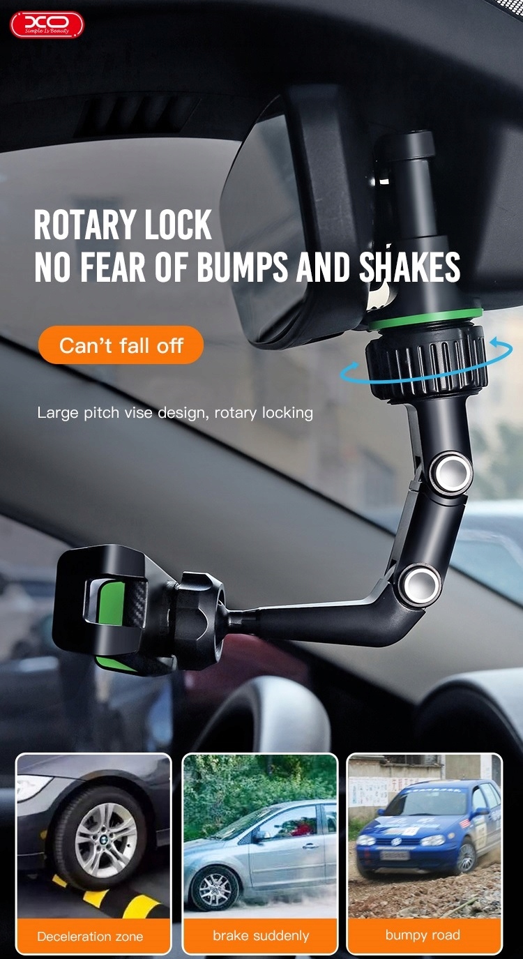 XO Автотримач для телефону кріпиться на дзеркало за допомогою чорного затискача