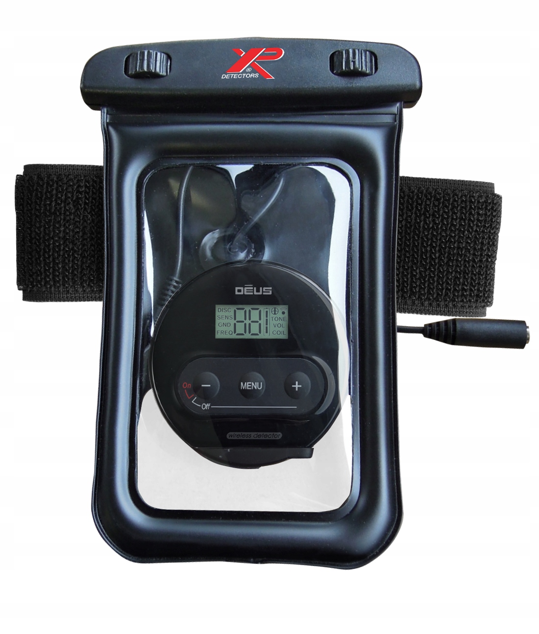 - водонепроницаемый чехол для панелей управления детекторами XP Deus и XP ORX и панель для наушников WS4 после отсоединения от наушников.< /li