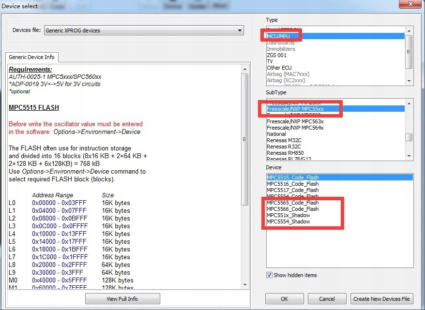 Примечания для XProg v5.55: