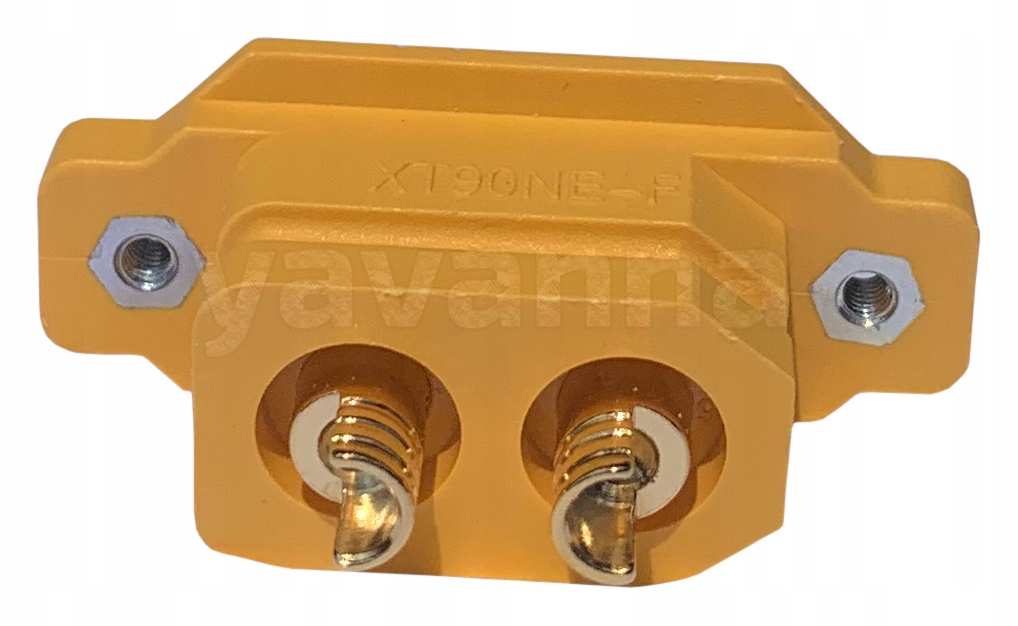 Предмет продажи — новая оригинальная розетка XT90NE-F от Amass. По бокам у него есть «уши» с гайками, позволяющие привинчивать его к панели или кронштейну, что предотвращает выдергивание кабелей. Для крепления используйте винты M2,5. Представляет собой разъем с позолоченными контактами, большой ток - 45А (постоянный ток), 90А (мгновенный ток). К этому разъему подходят любые вилки XT90.