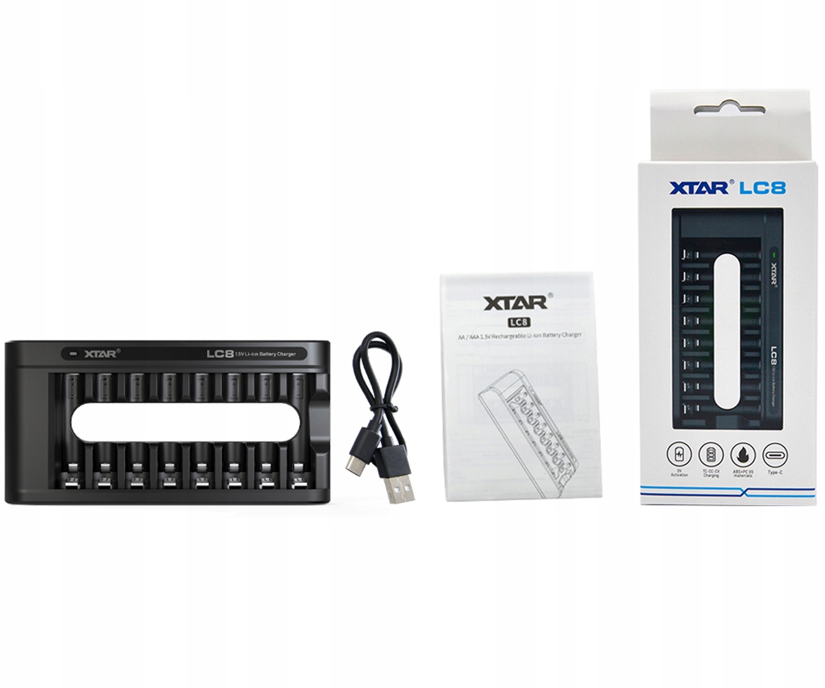 XTAR LC8 AA/AAA 1,5 В литий-ионное зарядное устройство 8 каналов USB-C