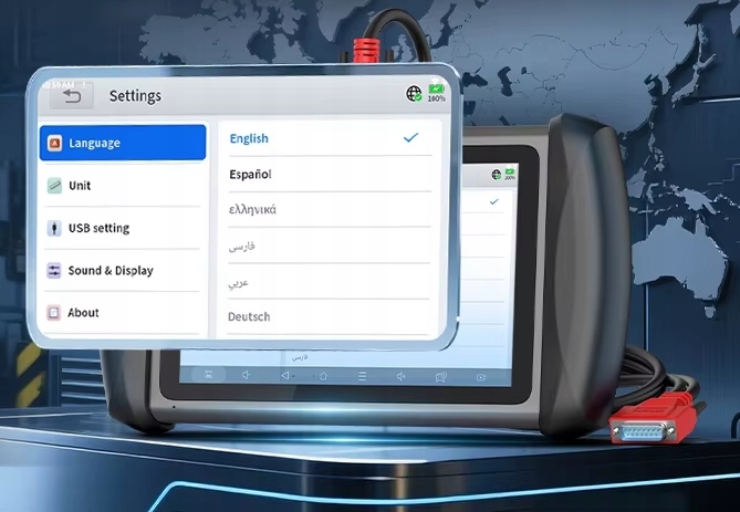 - Поддержка полной диагностики всех систем - двигателя, коробки передач, ABS, SRS, TPMS, кузова, кондиционера и т. д.
