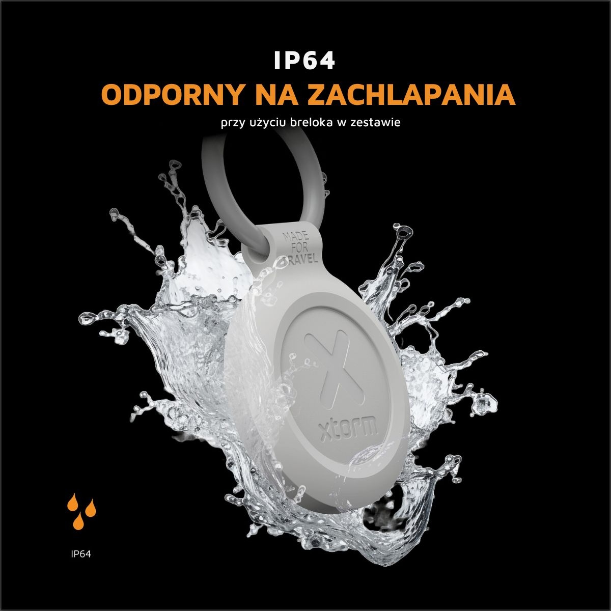 Корпус с приподнятыми краями имеет степень защиты IP64, что делает его водонепроницаемым и идеально вписывается в дизайн. Защищает ваш TravelTag от ударов, царапин и брызг дождя. Бирку можно просто прикрепить к рюкзаку или чемодану с помощью прилагаемого брелока.