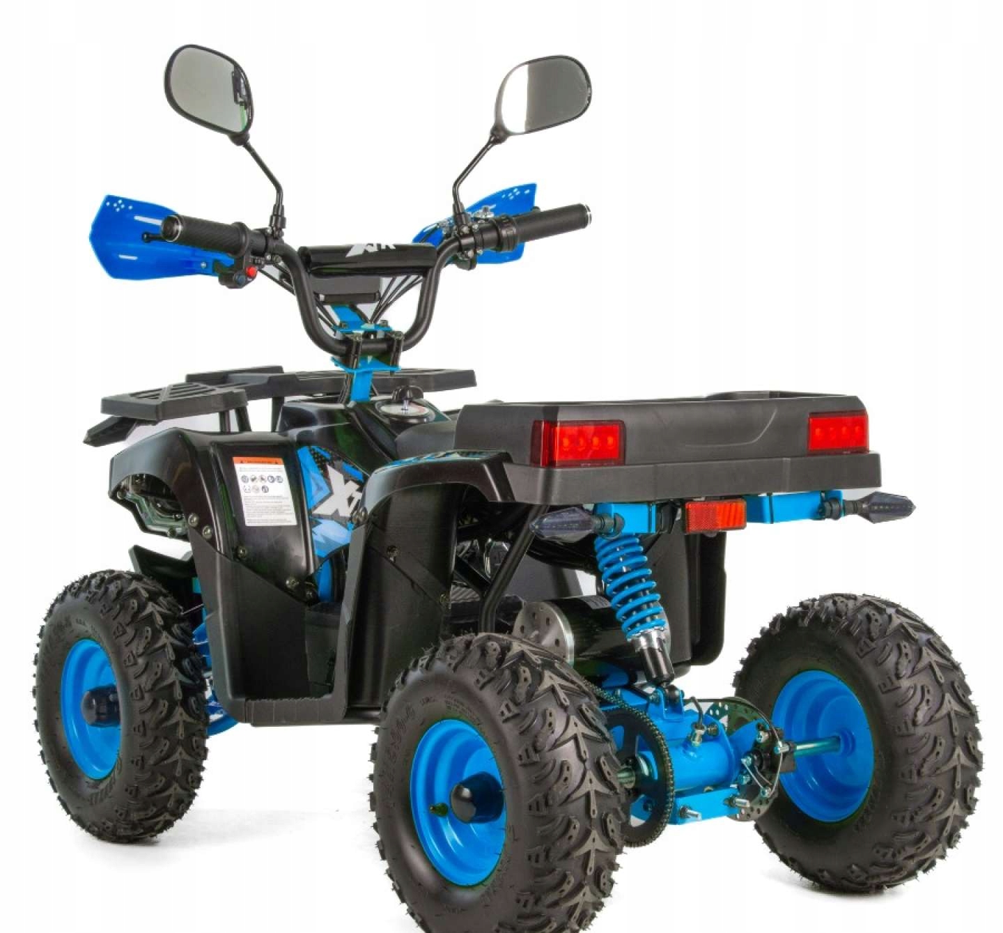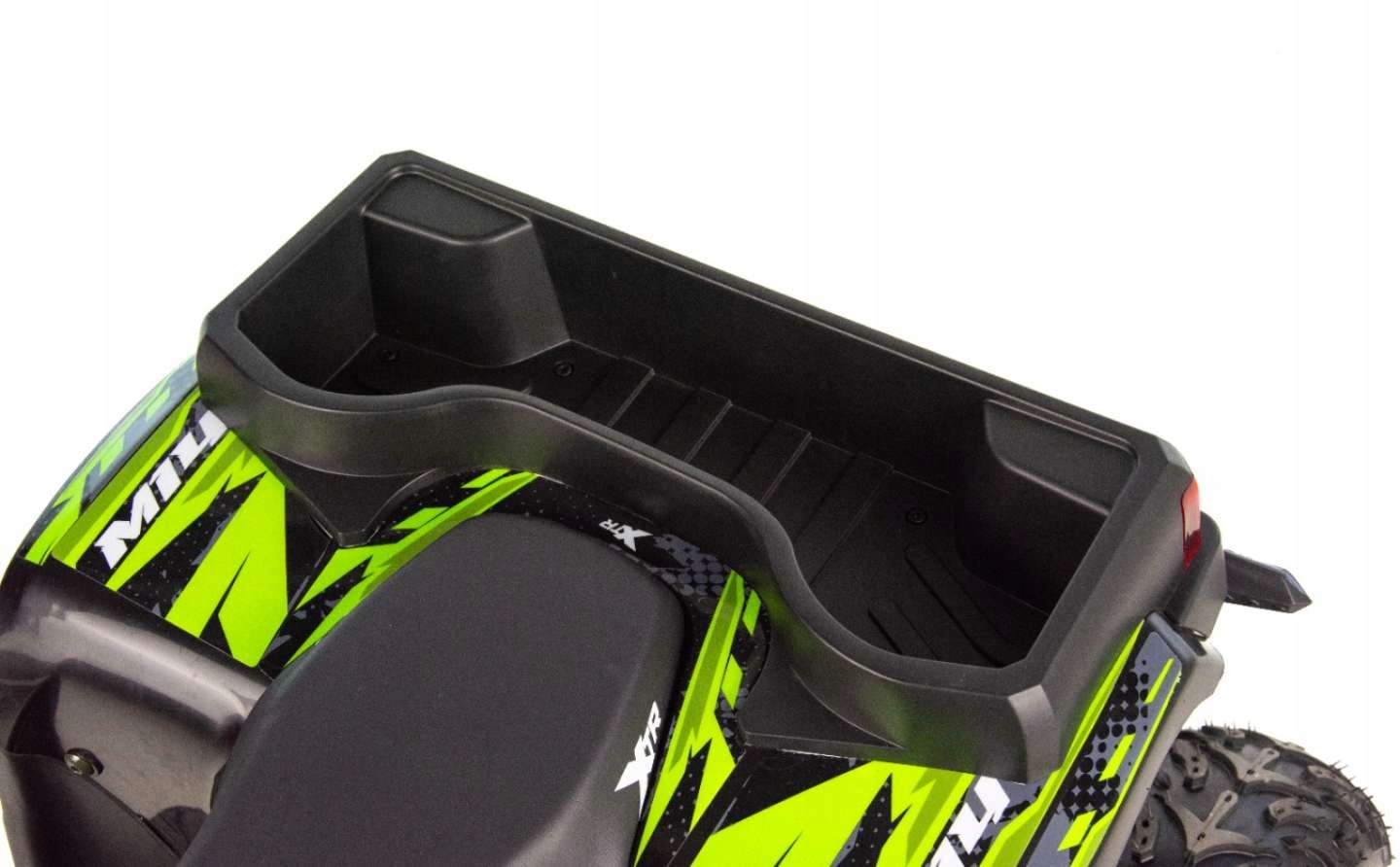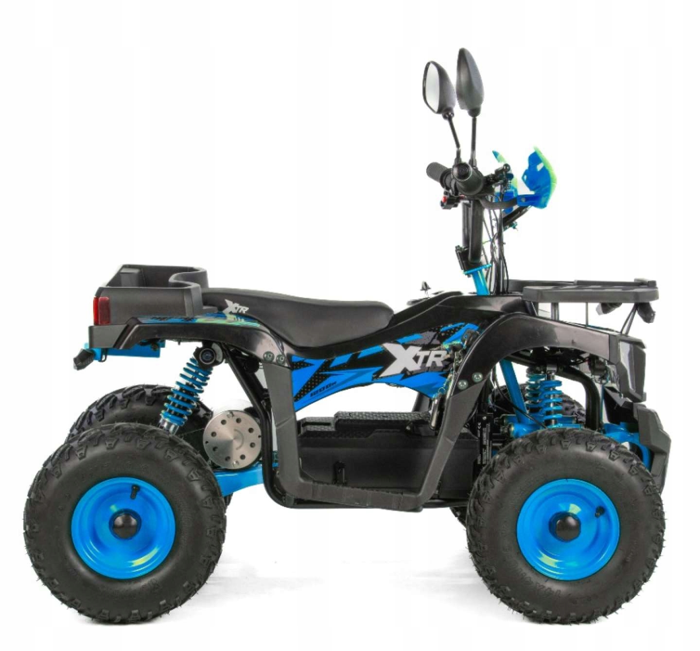 Мини-электрический квадроцикл XTR M12 — автомобиль с двигателем мощностью 1200 Вт с возможностью трехступенчатой регулировки скорости с помощью зажигания. Переправочный квадроцикл с задним ходом для детей ростом от 120 см. Оснащен светодиодными фарами, электронным счетчиком и зеркалами.