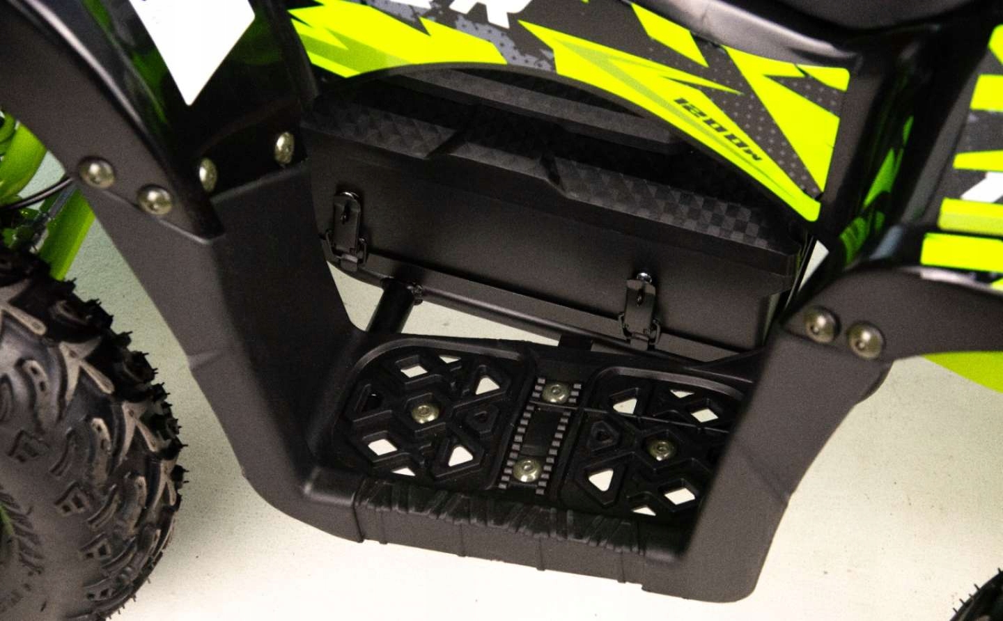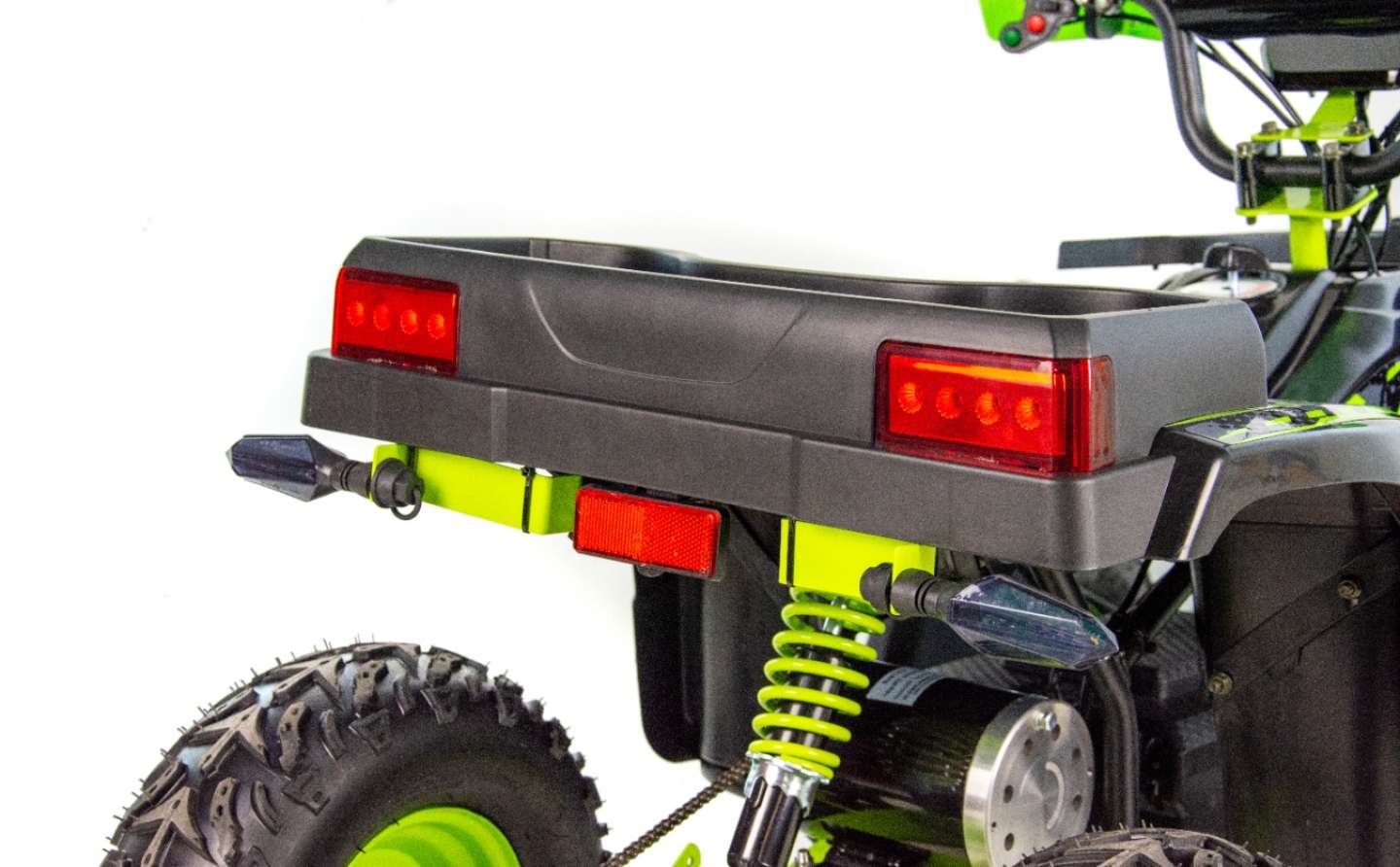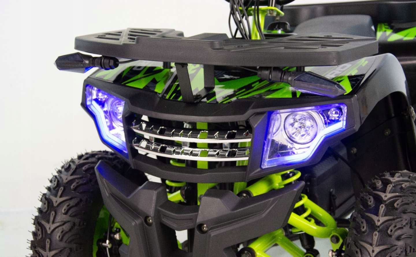 Мини-электрический квадроцикл XTR M12 — автомобиль с двигателем мощностью 1200 Вт с возможностью трехступенчатой регулировки скорости с помощью зажигания. Переправочный квадроцикл с задним ходом для детей ростом от 120 см. Оснащен светодиодными фарами, электронным счетчиком и зеркалами.