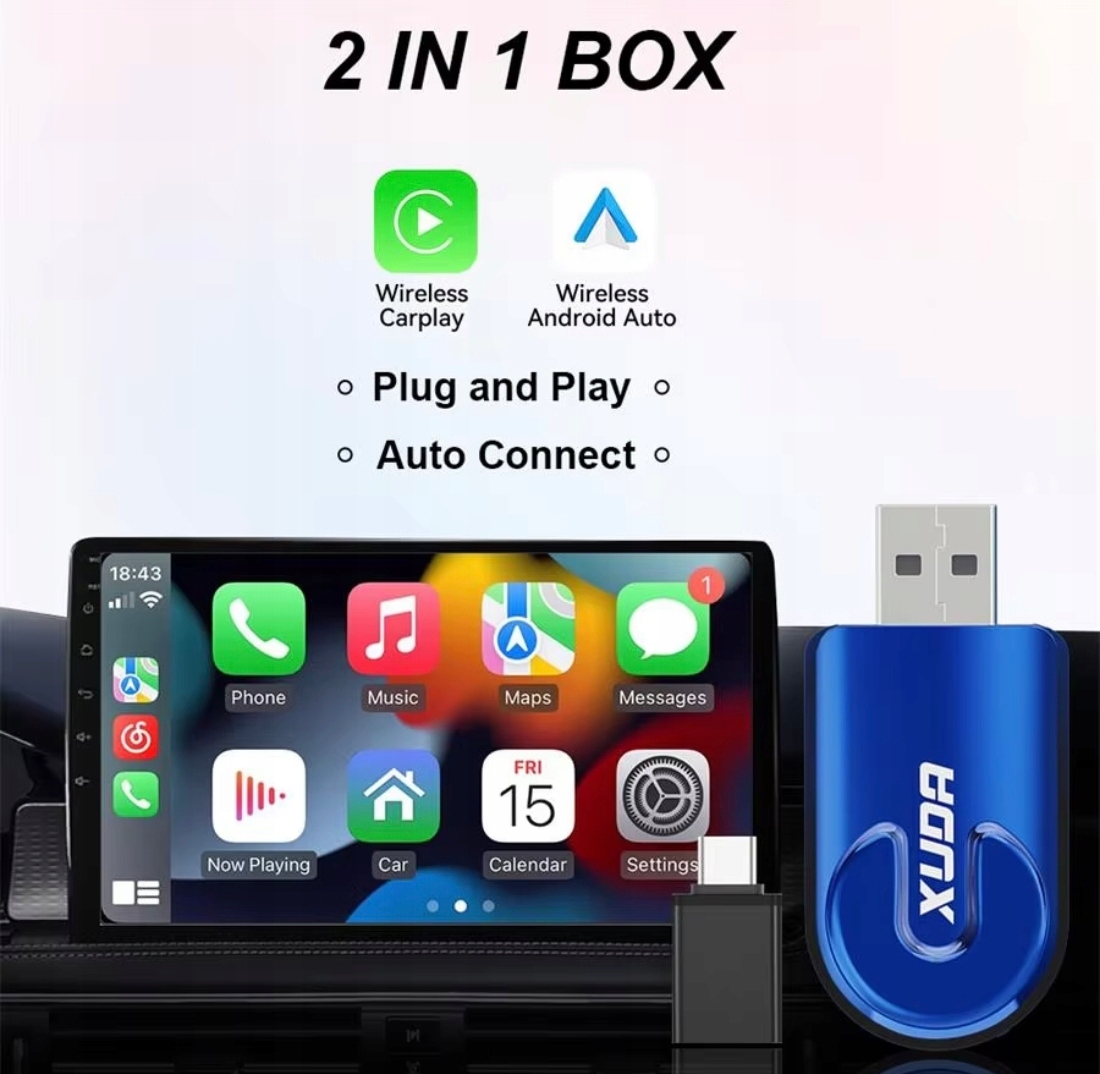 usb xuda 2 в 1 адаптер для Android Auto и CarPlay беспроводное соединение