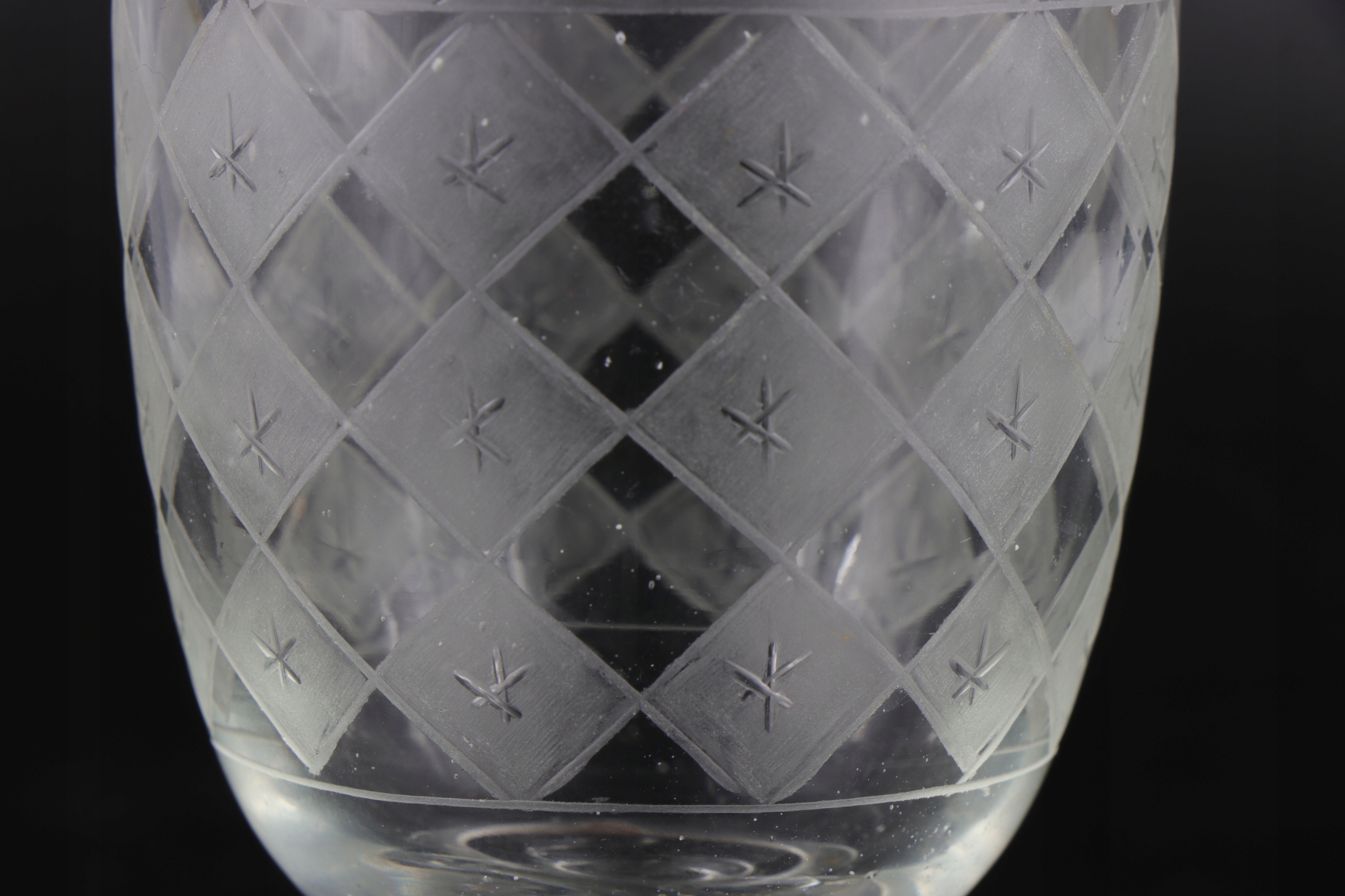 Очень интересное стекло из 18 -го века в начале 19 -го века. Стекло с квадратным характерным основанием и ромбическим разрезом. Старое стекло в массе стекла можно увидеть многочисленные небольшие включения пузырьков воздуха. Нога и миска стеклянного листа отдельно.