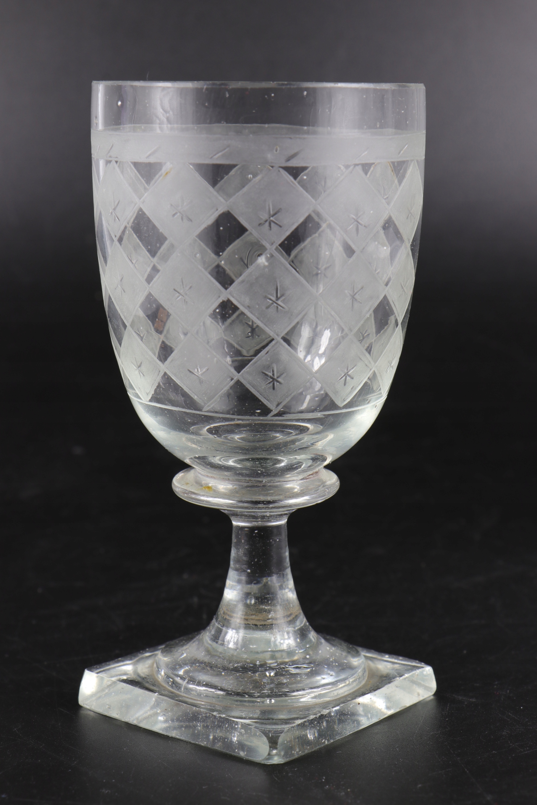 Xviii 19 -го века Стеклянное стекло с квадратной основой Силезии
