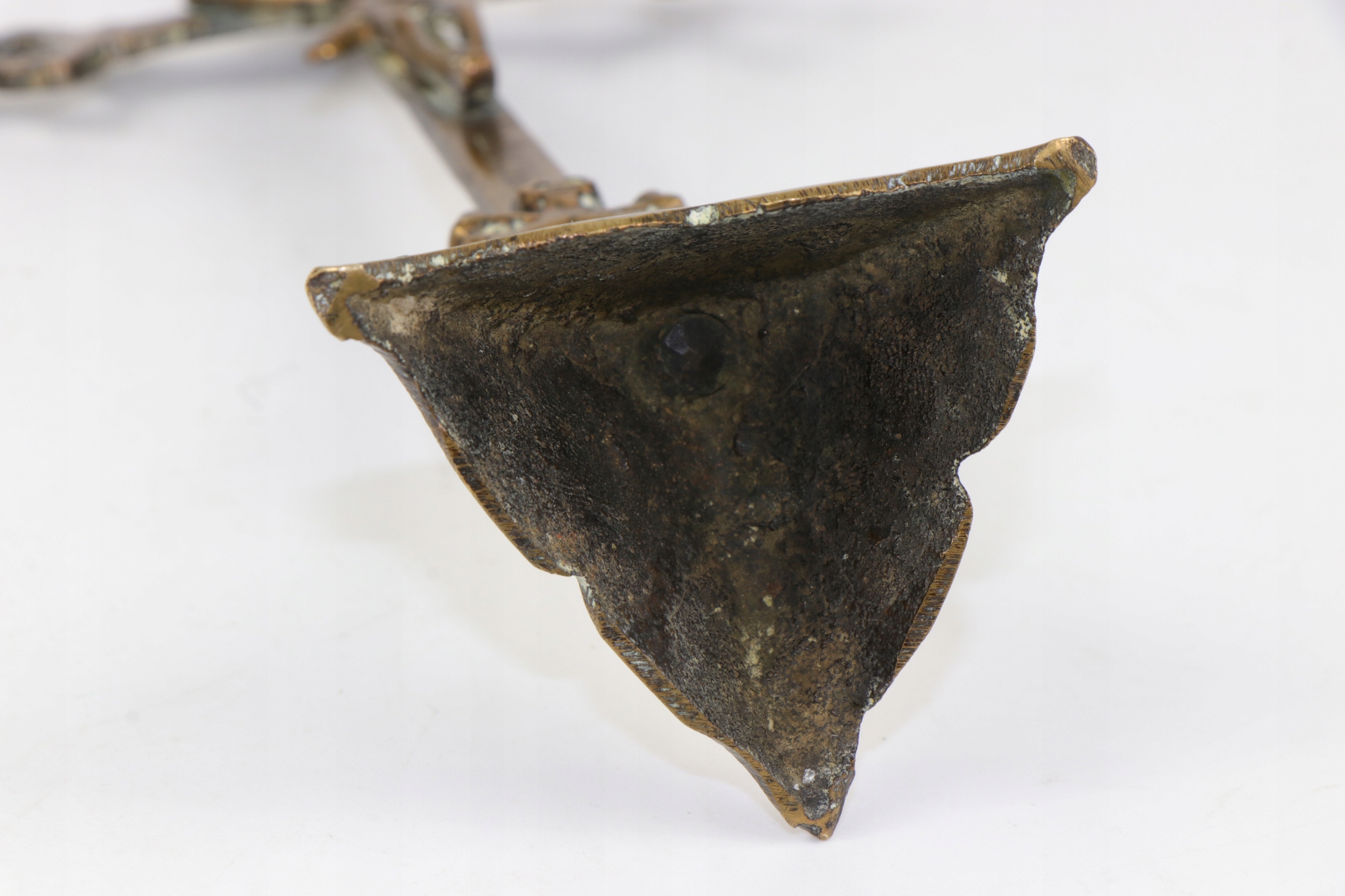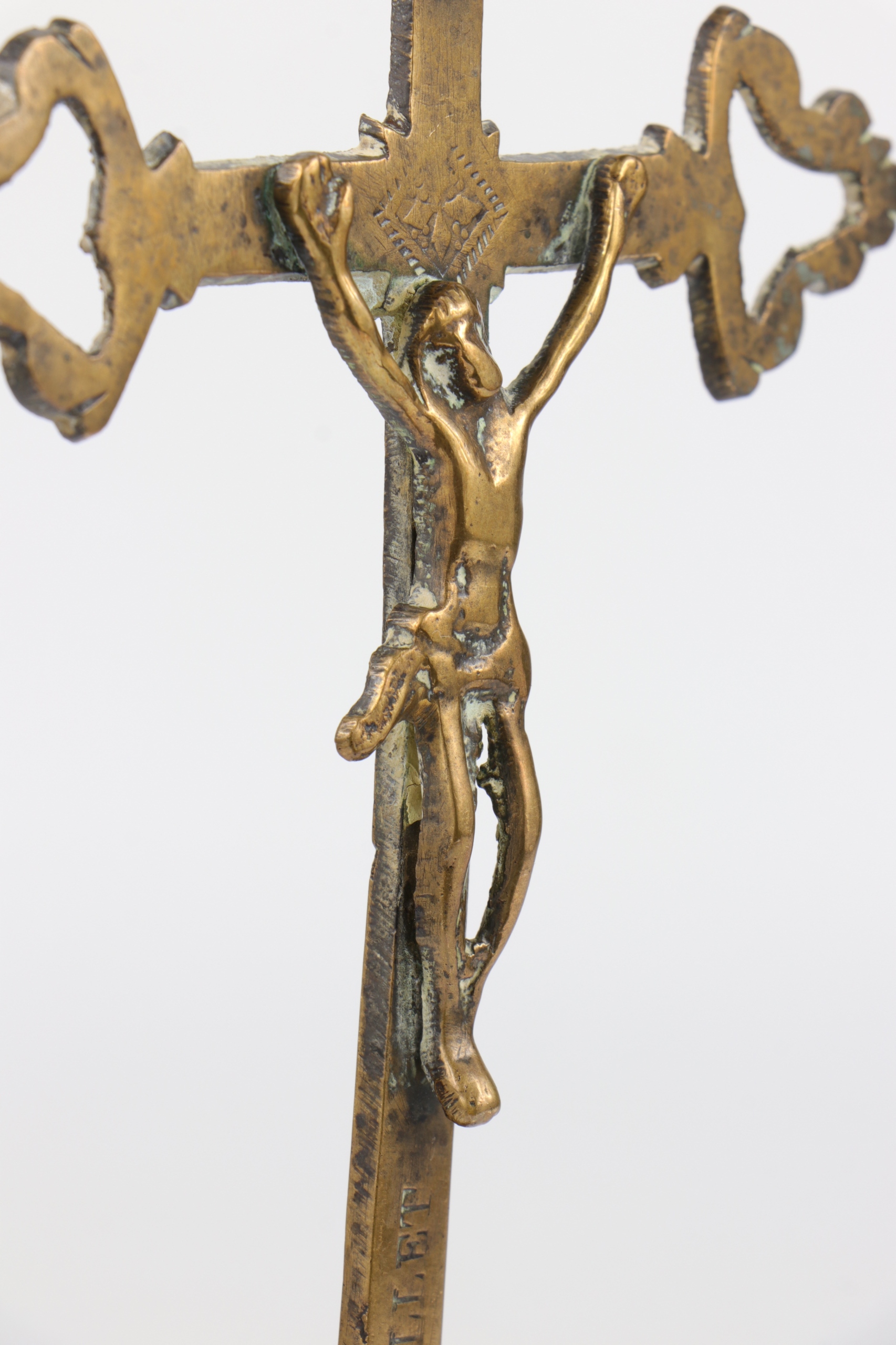Интересное распятие XVIII века. Очень интересная и редкая вещь. На распятии череп и надпись Carbillet. Очень старая потертая латунь.