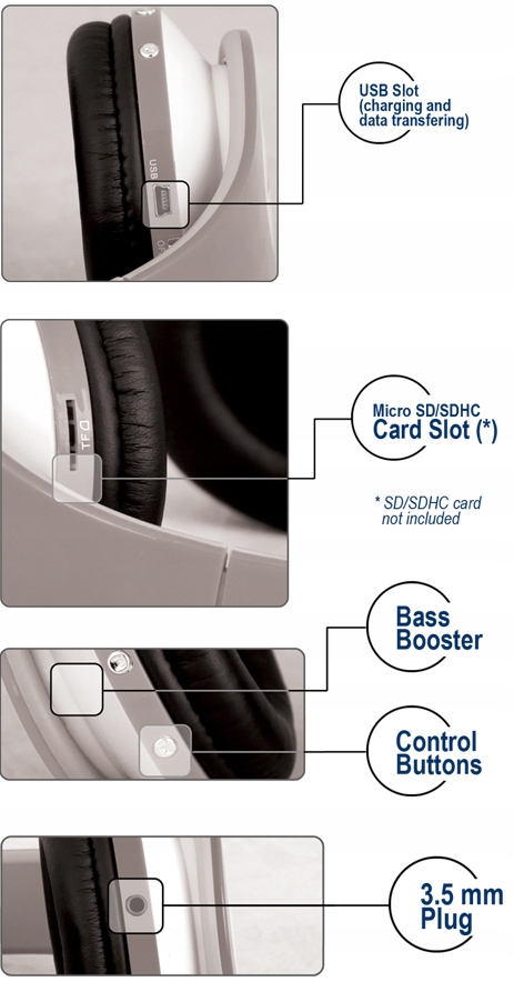 Стереонаушники со встроенным MP3-плеером на карте micro SD/SDHC (не входит в комплект) и FM-радио. Благодаря им вы сможете брать музыку с собой куда угодно без дополнительного устройства. Вам также не понадобится кабель!