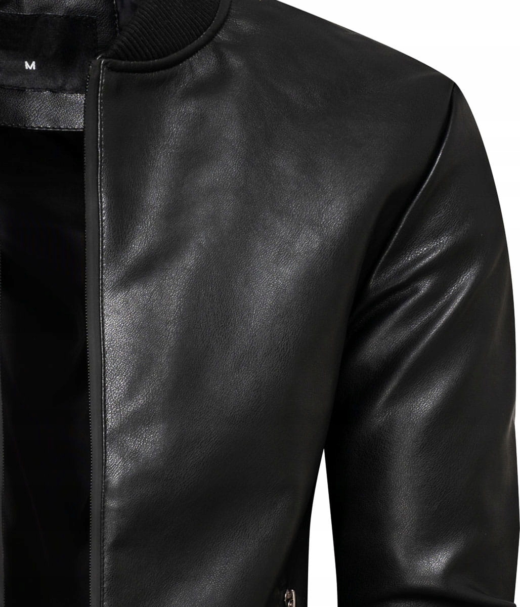 Черная мужская куртка на воротнике. традиционная куртка никогда не выходит из моды. Он имеет покрытый ползунок по всей длине. Куртка была оборудована подкладкой, что делает ее идеальной курткой для весны и осени. У него есть пота, завораживающие штаны на талии и рукавах, благодаря тому, к которому он придерживается красивого и имеет аккуратный порез. На стороне вы найдете практичные - нарезанные карманы, также внутри - один скольз. Куртка изготовлена из эко -ликового материала со 100% полиуретаном.