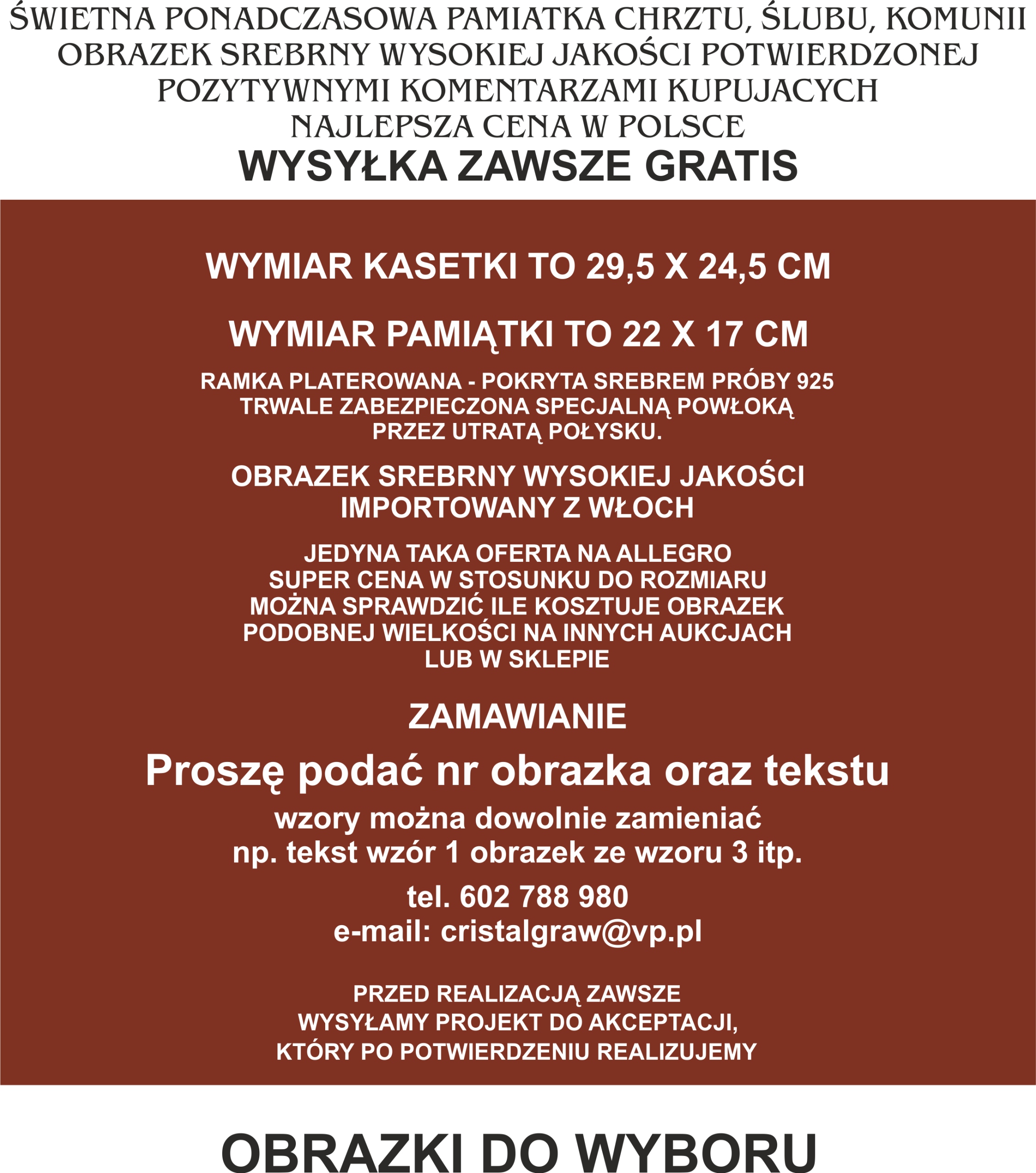 Оплачивая «СЕРЕБРЯНОЕ ИЗОБРАЖЕНИЕ XXL, СВАДЬБА, ПРИЧИНЕНИЕ, ГРАВИРОВКА КРЕЩЕНИЯ» данный товар из каталога «Картинки» вы можете быть уверены, что после оформления заказа, доставки в Украину, вы получите именно то, что заказывали, в оговоренные сроки и европейского качества.