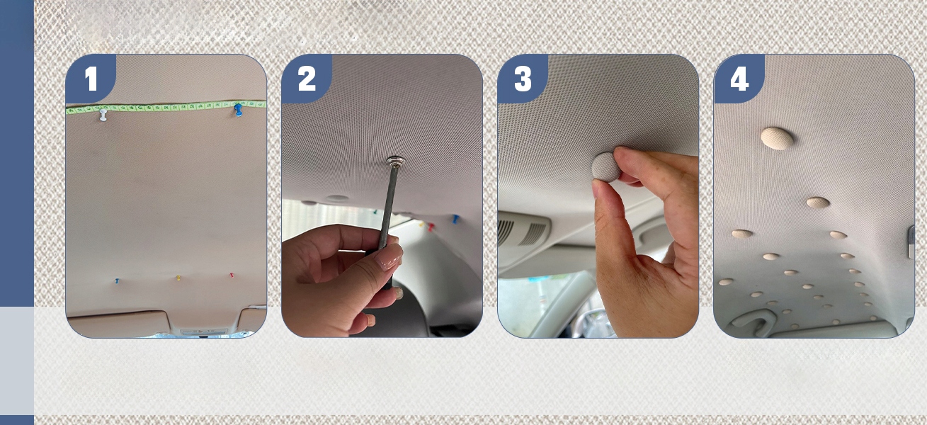 ✳️Очень простая установка: просто отметьте место, где будут установлены заклепки, и закрепите их с помощью отвертки, входящей в комплект. Рекомендуемое расстояние установки каждой заклепки – 10–15 см, в зависимости от того, насколько плотно прилегает материал обшивки потолка.