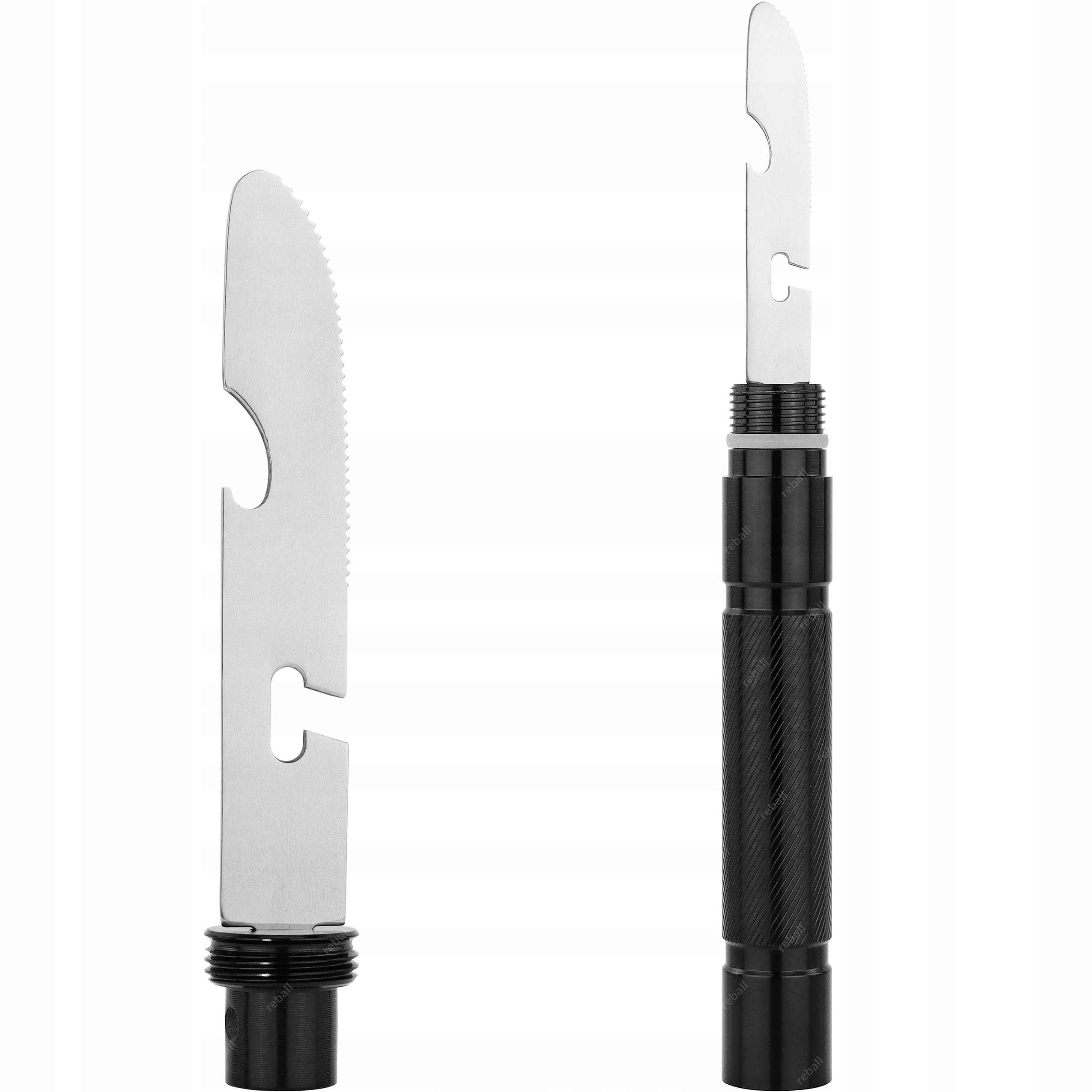 Он имеет зубчатое лезвие, которое обеспечивает эффективную резку и измельчение таких материалов, как веревки или ветки. Кроме того, он оснащен открывалкой для бутылок, что делает его универсальным инструментом для повседневного использования.