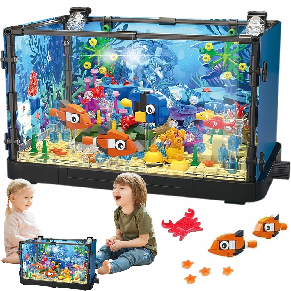 Я буду аквариумными блоками 725 ПК с светодиодным подводным миром + Подарок для движущейся рыбы