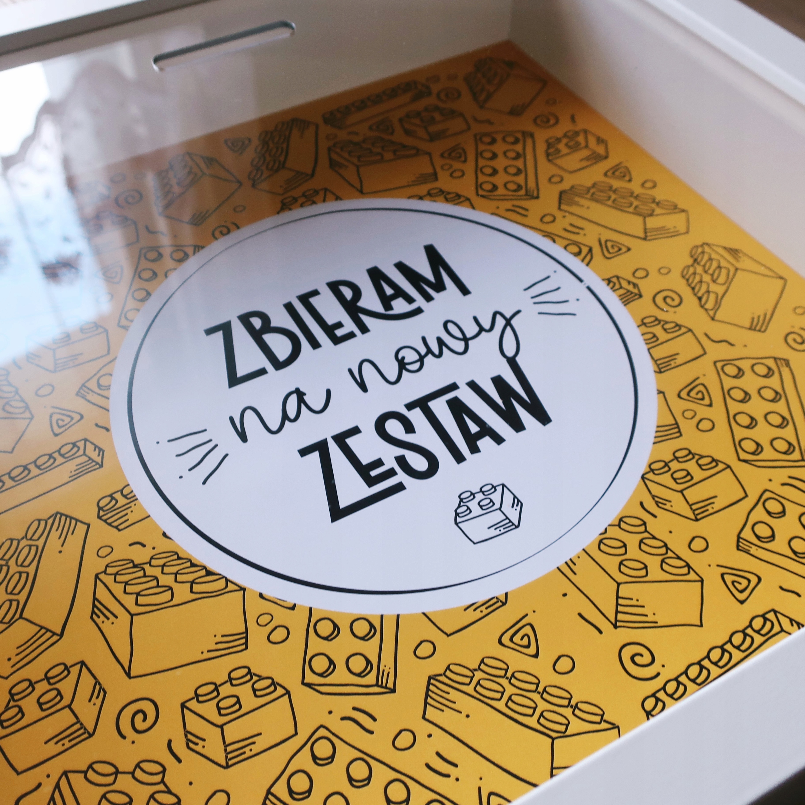 Центрально расположенный белый круг с надписью «Я собираю для нового сета», работает как магнит, который привлекает как молодых, так и старших строителей Lego, побуждая их убрать деньги на новые приключения здания каждый день. Каждая иллюстрация, ручная, добавляет личного персонажа, напоминая, что каждый набор LEGO -это отдельная история, полная открытий и воображения.