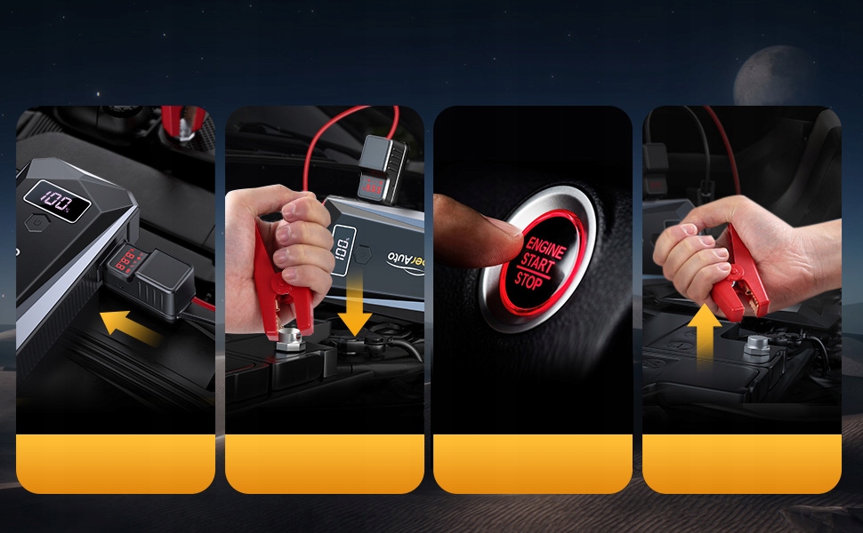 Портативный стартер голеностопного сустава из 12 В ---- Внутренний стартер без домиков Yaberauto оснащен батареей большой емкости 26800 мАч. Благодаря пиковому току 5000A он может запустить все газовые / дизельные транспортные средства до 10,0 л. Он также совместим с мотоциклами, лодками и внедорожниками.