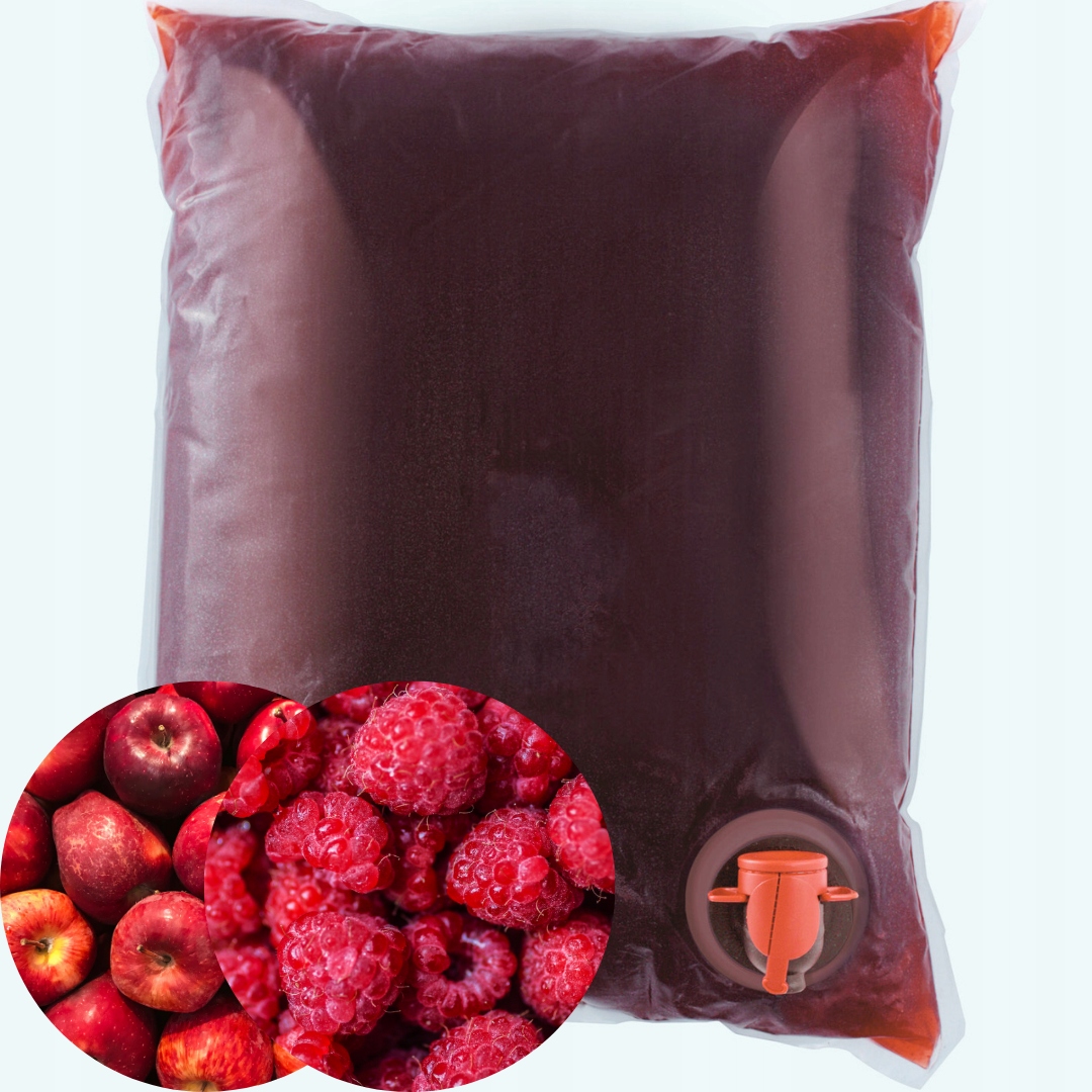Сок яблочно-малиновый в пакете-мешке с краном емкостью 3000 мл, прессованный, бережно пастеризованный.