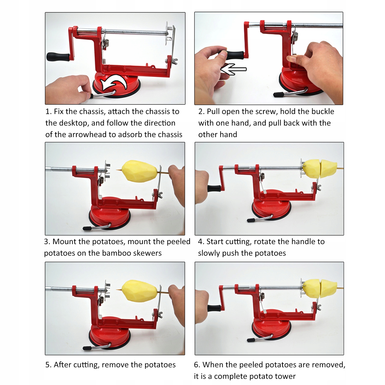 1. Ручное управление: Эта ручная спиральная картофелерезка позволяет вам приготовить спиральный картофель для великолепного гриля или фигурные картофельные чипсы и другие вегетарианские закуски для вашей семьи.