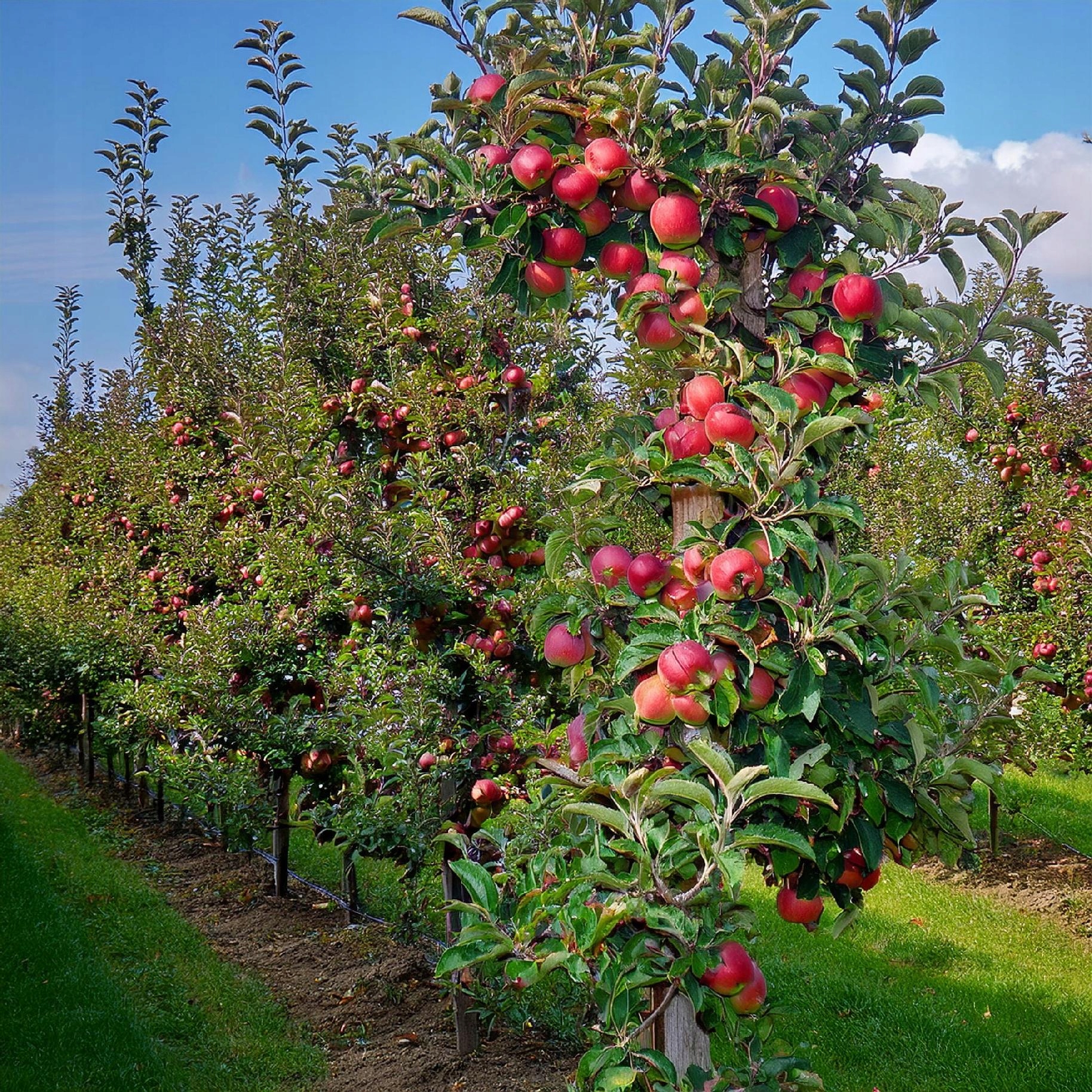 Колоновидная яблоня Майский столб – необыкновенный сорт, восхищающий не только вкусом плодов, но и декоративным видом. Это настоящая жемчужина среди колоновидных яблонь – идеально подходит для приусадебных участков, приусадебных участков, а также для выращивания в больших горшках на террасе или балконе. Его стройная колонновидная форма позволяет наслаждаться красивым деревом даже там, где мало места. Дерево растет вертикально, достигая примерно 2,5–3 метров в высоту и сохраняя узкий силуэт менее 1 метра в ширину. Его самым большим преимуществом являются исключительные декоративные особенности: темно-красные листья, бордовые цветы и ярко окрашенные плоды. Благодаря этому майский шест привлекателен круглый год и прекрасно сочетает в себе функциональные и декоративные качества. Весной яблоня покрывается необычными, бордовыми и розовыми цветами, которые издалека привлекают внимание и являются настоящим украшением сада. Летом листья сохраняют свой насыщенный красный цвет, что выделяет дерево среди других растений. Осенью созревают плоды с ярко-темно-красной кожицей и такой же красной мякотью, а зимой дерево приобретает элегантную прямую форму, что также добавляет помещению очарования. Плоды майского дерева среднего размера, шаровидные, очень декоративные и чрезвычайно ароматные. Их мякоть ярко-красная, что делает их уникальными по сравнению с другими сортами. Вкус характерный, кисло-сладкий, освежающий и сочный. Они идеально подходят для свежевыжатых соков, сидра, фруктовых вин, муссов и джемов, а также для привлекательной выпечки. Взрослое дерево дает в среднем 8-12 килограммов плодов в год, а регулярные урожаи делают этот сорт очень популярным среди любителей необычных яблонь. Сорт полностью устойчив к морозам до -28°С, поэтому отлично переносит польские зимы и не требует дополнительной защиты. Как и другие колонновидные яблони, лучше всего растет на солнечном месте и на плодородной, водопроницаемой, умеренно влажной почве. Майский шест можно сажать как в грунт, так и в контейнеры. В случае с горшком он должен иметь емкость минимум 40-50 литров, с дренажными отверстиями и дренажным слоем. При выращивании в контейнерах необходим более частый полив и систематическое внесение удобрений, чтобы плоды оставались пухлыми и сочными. Уход за майской яблоней прост – в первые годы достаточно удалить боковые побеги, чтобы сохранить стройную колонновидную форму. Регулярный полив и внесение удобрений позволяют добиться здорового роста и качественного урожая. Мы предлагаем здоровые, крепкие саженцы, тщательно подготовленные к отправке, с хорошо развитой корневой системой. Каждое растение надежно закреплено, поэтому оно доставляется в идеальном состоянии и быстро готово к использованию.