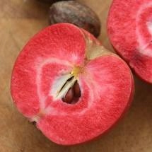 Плоды — среднего размера. Эти яблоки содержат в 10–25 раз больше антоцианов, чем в других яблоках. Антоцианы — это пигменты, которые встречаются в основном в красных фруктах и овощах, они имеют противовоспалительные и антиоксидантные свойства