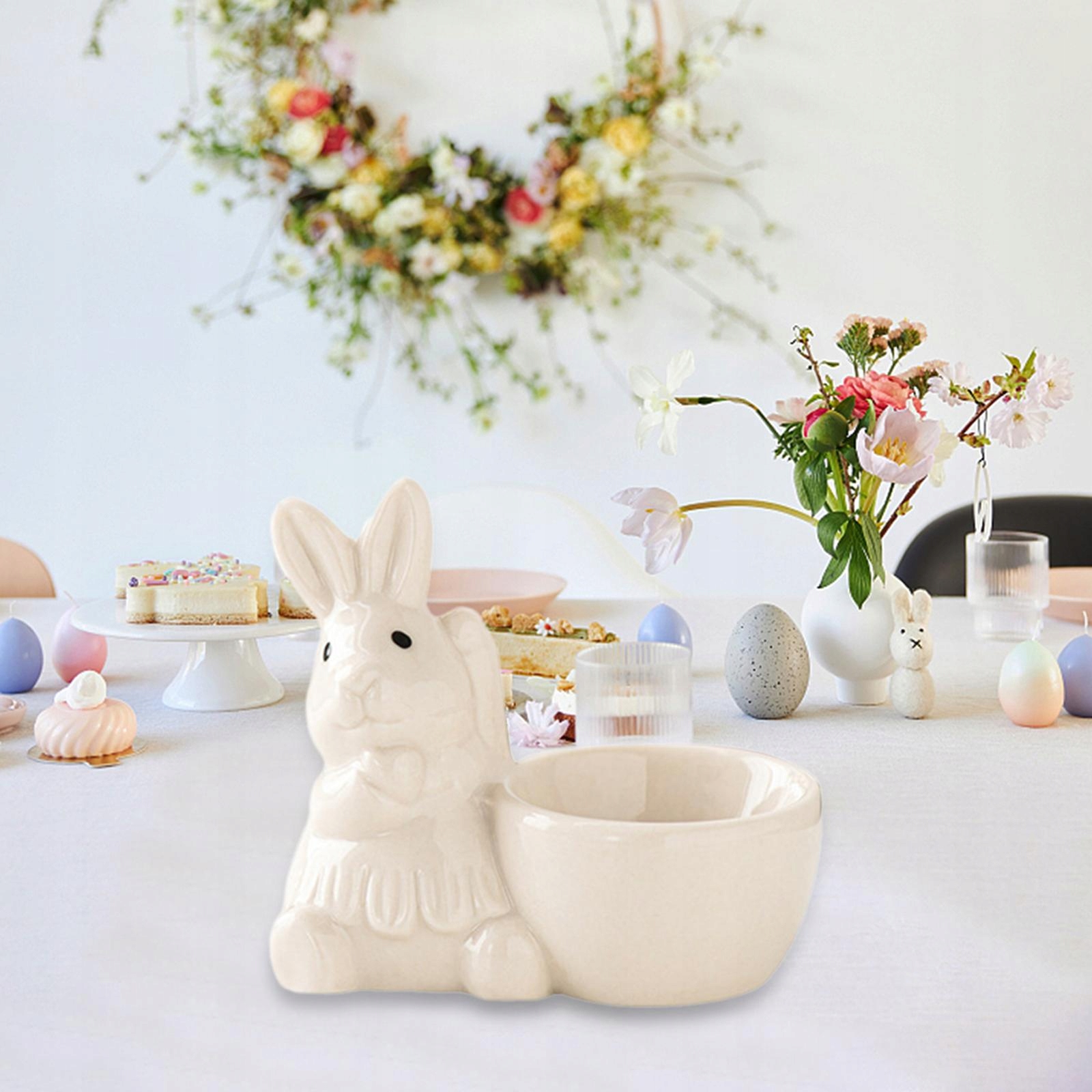 Яичное стекло стоять пасхальный пасхальный кролик для мягких яиц, на ужин в белом