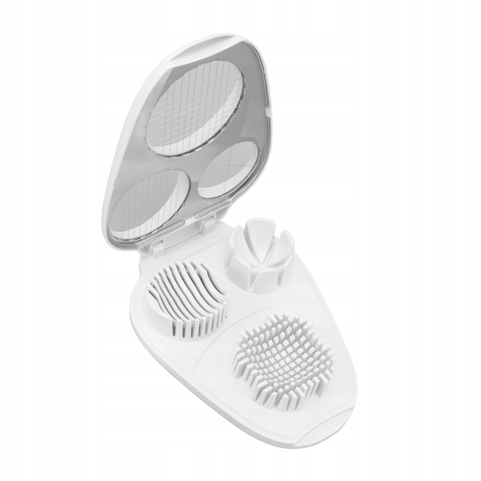 4. С КРЫШКОЙ: Яйцерезка имеет контейнер для обработки продуктов. Благодаря такому контейнеру яйца не будут растекаться.