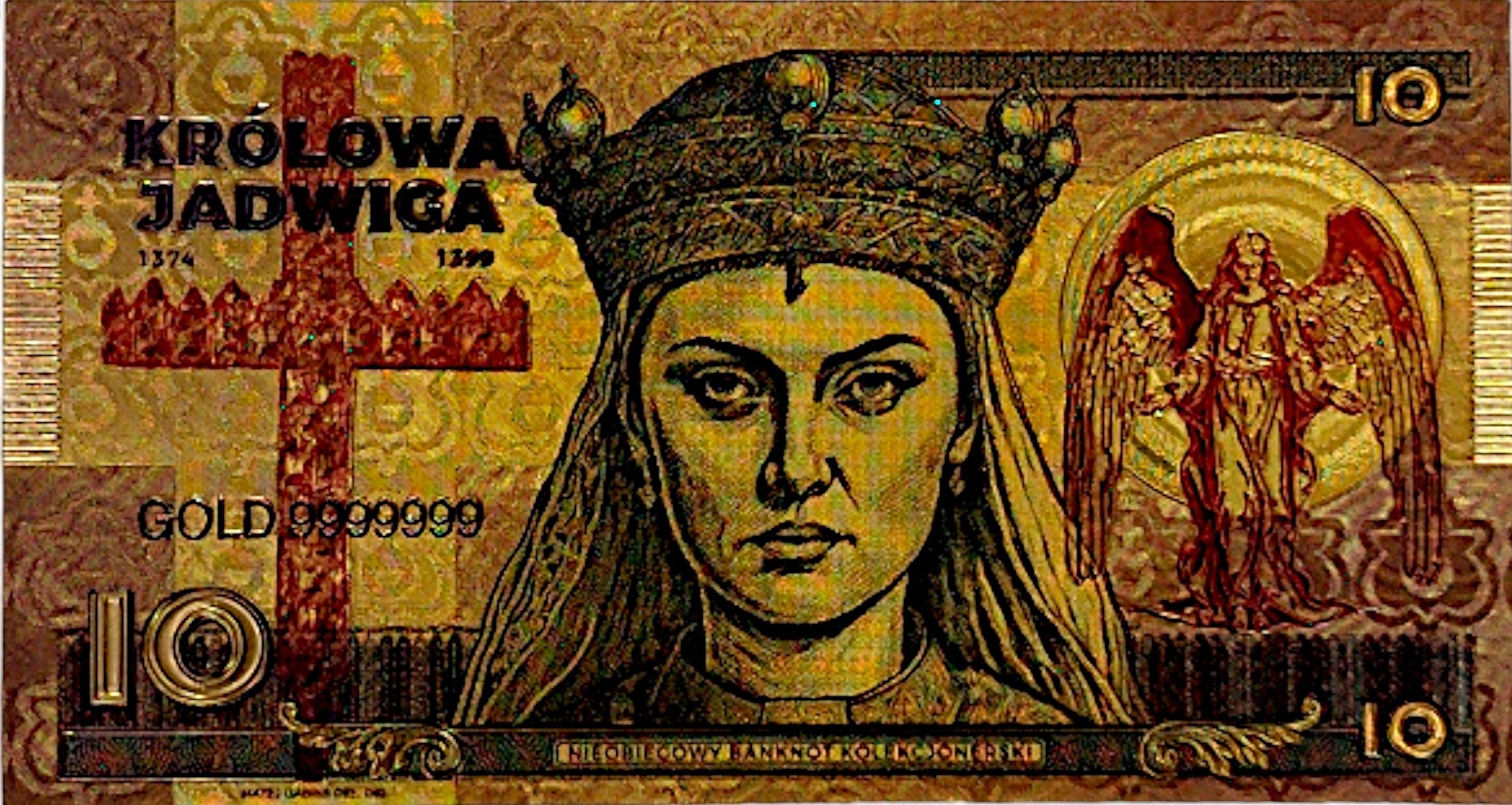 Позолоченная банкнота с королевой Ядвигой