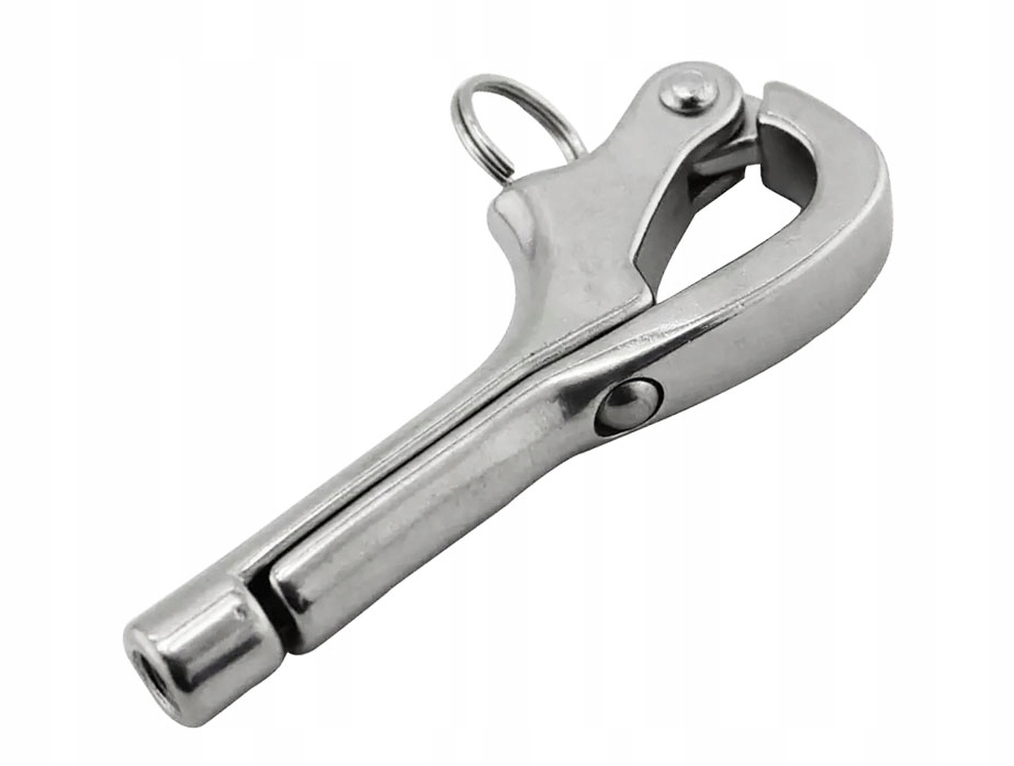 Застежка-крючок типа «Пеликан», изготовлена из кислотостойкой стали А4, AISI 316. Для присоединения к концу съемник с резьбой М6 (приобретается отдельно код 00335). Используется на парусных яхтах, например, для окончания перил.