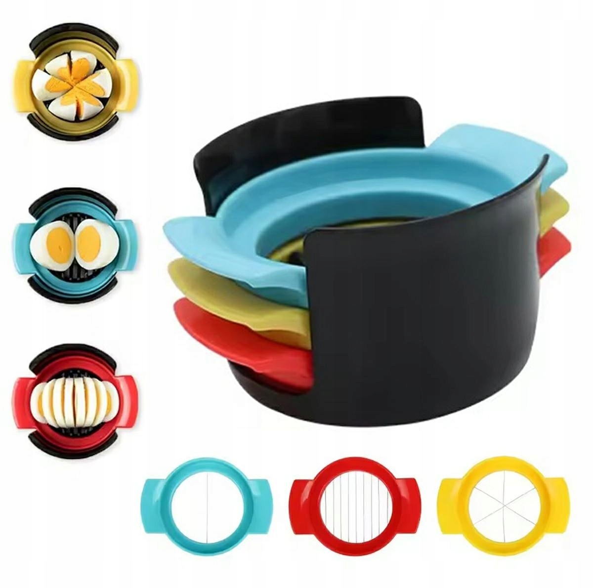 Вы ищете удобный и быстрый способ разрезать яйца на салаты, бутерброды или украшения блюд? Наш Slicer 3in1 - это инновационный кухонный аксессуар, который сделает приготовление еды еще проще и приятнее! Благодаря трем заменяемым свесам вы можете разрезать яйца на различные конструкции, получая идеальные срезы и частицы без усилий.