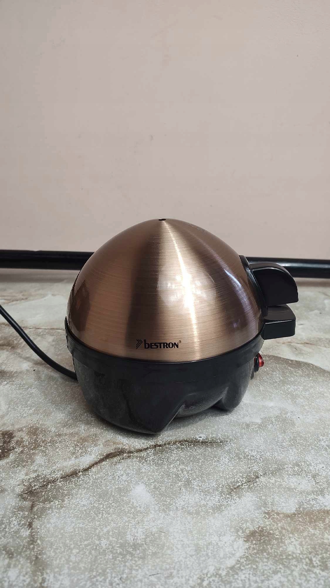 - Объём поставки: 1 Яйцеварка Bestron, в комплект входят мерный стакан и пробойник для яиц, Copper Collection, мощность: 350 Вт, материал: пластик/нержавеющая сталь, размеры: 16,5 x 17,5 x 16,5 см, вес: 0,52 кг, цвет: черный/медь, AEC1000CO