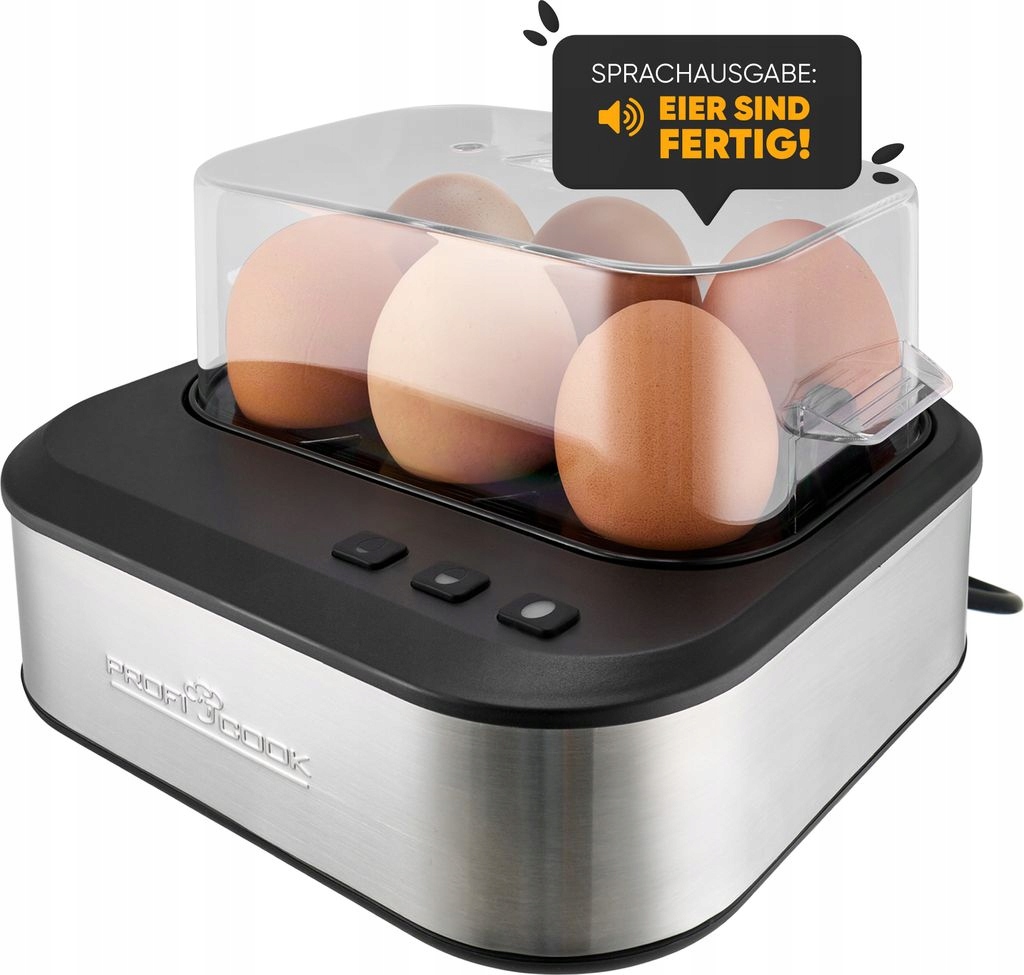 ProfiCook PC-EK 1276 — устройство, благодаря которому классический французский завтрак без особых усилий может оказаться на вашем столе. Казалось бы, простая задача — сварить яйцо всмятку — может оказаться довольно сложной задачей — это не тот случай, когда вы используете яйцеварку. Устройство само регулирует время приготовления в зависимости от твердости яиц — вам просто нужно выбрать, хотите ли вы приготовить яйца мягкими, средними или твердыми.