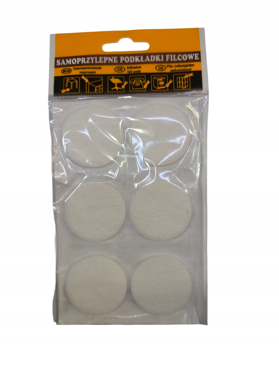 прокладки, изготовленные в форме самодовольно -адгезивных войлочных форм различной формы и толщиной 5 мм, используемые для мебели, стульев, стул, бытовых приборов обеспечивают защиту пола и другие твердые поверхности от царапин и повреждения, также вызывают значительное снижение шума при замене мебели. Они придерживаются любых твердых обезжиренных, очищенных и даже поверхностных, таких как древесина, металл, ламинаты или виниловые, самоадгезивная сторона облегчает их прикрепление, твердый клей обеспечивает длительную долговечность, навсегда и эффективно защищает поверхность от царапин.