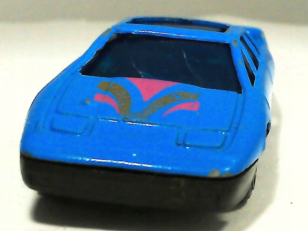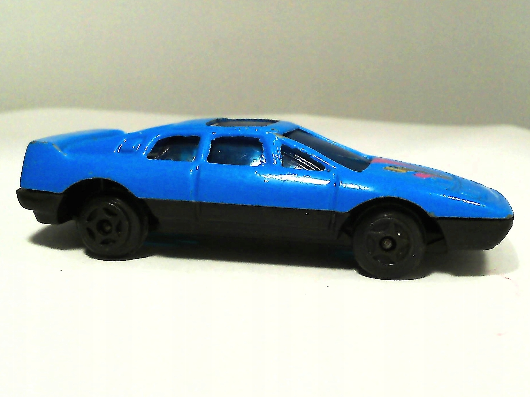 Resorak представляет синий спортивный автомобиль с яркими узорами, который притягивает взгляды благодаря своему динамичному внешнему виду. Модель из металла обеспечивает солидность, а ее длина в 50 мм идеально отражает пропорции в масштабе 1:87. Спойлер придает ему спортивный характер, и, несмотря на мелкие царапины, его состояние оценивается как хорошее.