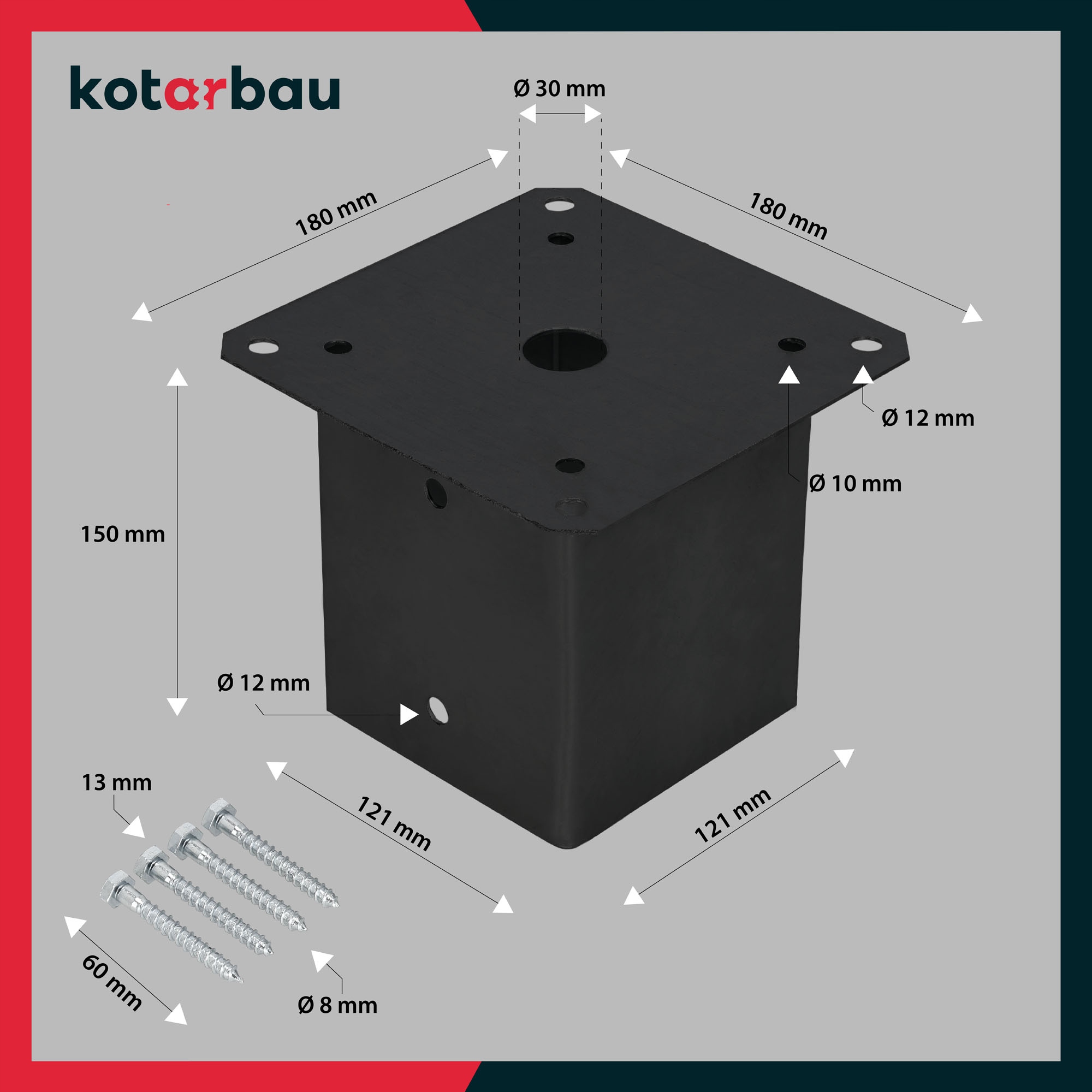 АНКОРНЫЙ КРОНШТЕЙН ДЛЯ ОСНОВАНИЯ КОЛОННЫ НА ВИНТАХ 120x120