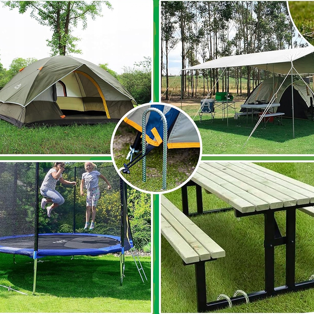 Долотообразный кончик этого U-образного анкера настолько острый, что его можно легко вбить в землю, луг, песок, твердый и каменистый грунт. Эти наземные якоря идеально подходят для кемпинга и пеших прогулок на открытом воздухе.