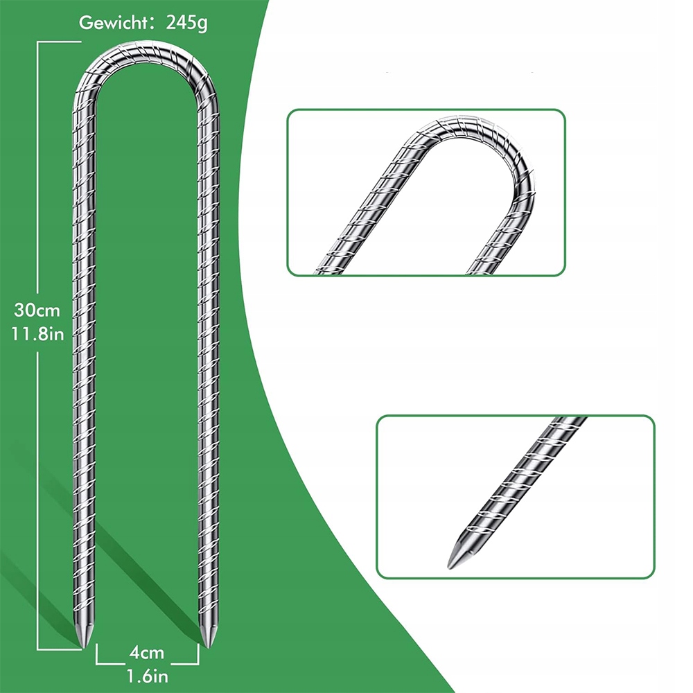Очень толстая 8-миллиметровая сталь гарантирует, что наземные якоря не сломаются даже на очень твердой каменистой почве! Доступны наземные анкеры длиной 30 см, что обеспечивает их устойчивость.