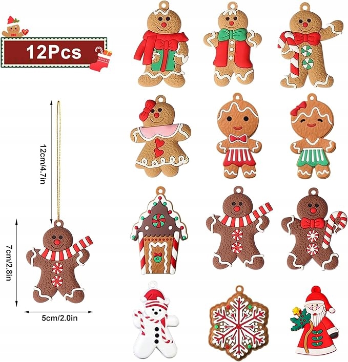 НАБОР ИЗ 12 ПРЯНИЧНЫХ УКРАШЕНИЙ – МИЛЫЕ РОЖДЕСТВЕНСКИЕ УКРАШЕНИЯ
