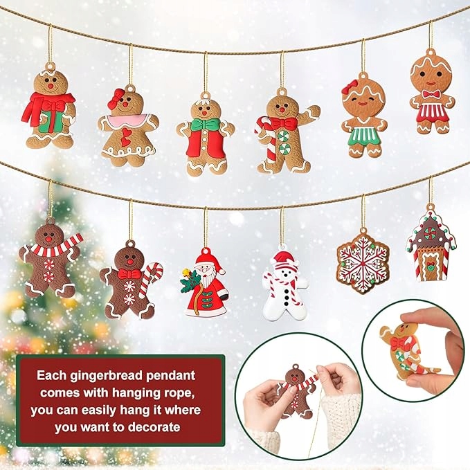 РОЖДЕСТВЕНСКИЕ УКРАШЕНИЯ ПРЯНИКИ КУЛОНЫ РОЖДЕСТВЕНСКИЕ ФИГУРКИ 12 ШТ.