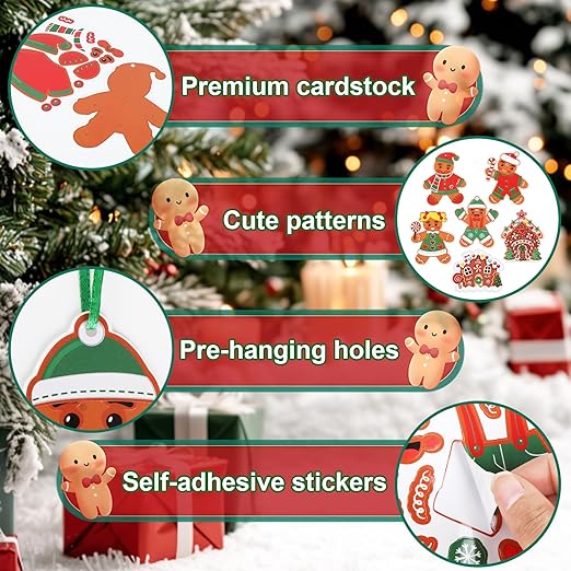 Подарите радостное и творческое рождественское настроение с декоративным набором имбирных пряников! Содержит 24 декоративные открытки, 24 наклейки и 24 ленты, которые позволяют детям создавать свои собственные уникальные рождественские украшения.