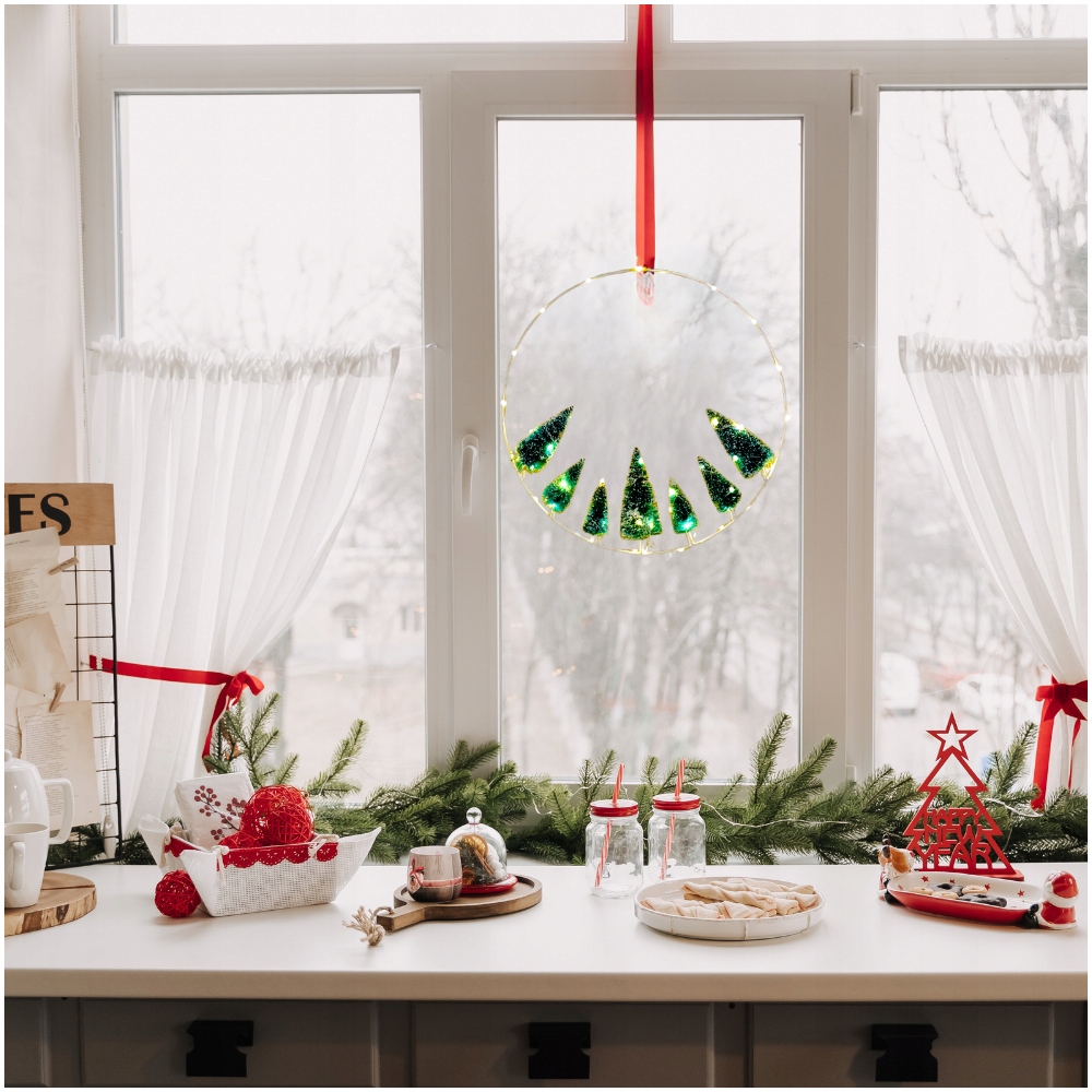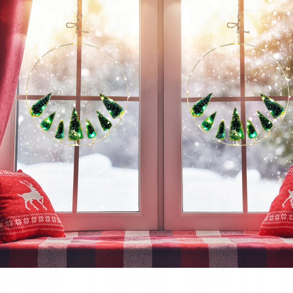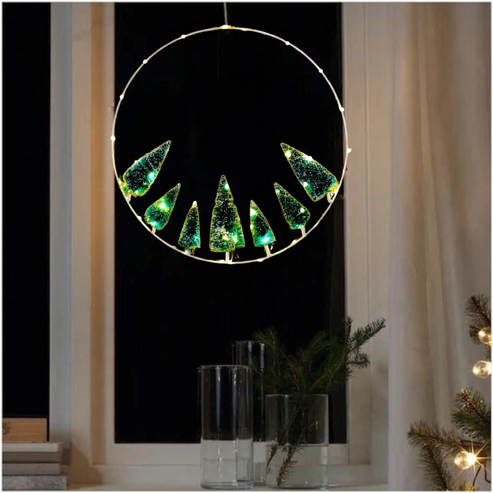 ЯЛИЧНИЙ ВІНОК 40 СМ З ПЕРЕКЛЮЧАЧОМ ЧАСУ 50 СВІТЛОДІОДІВ НА ВІКНО