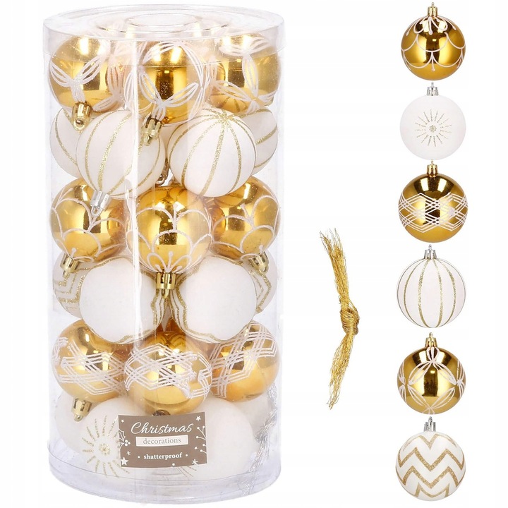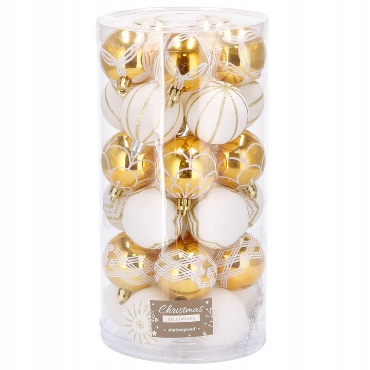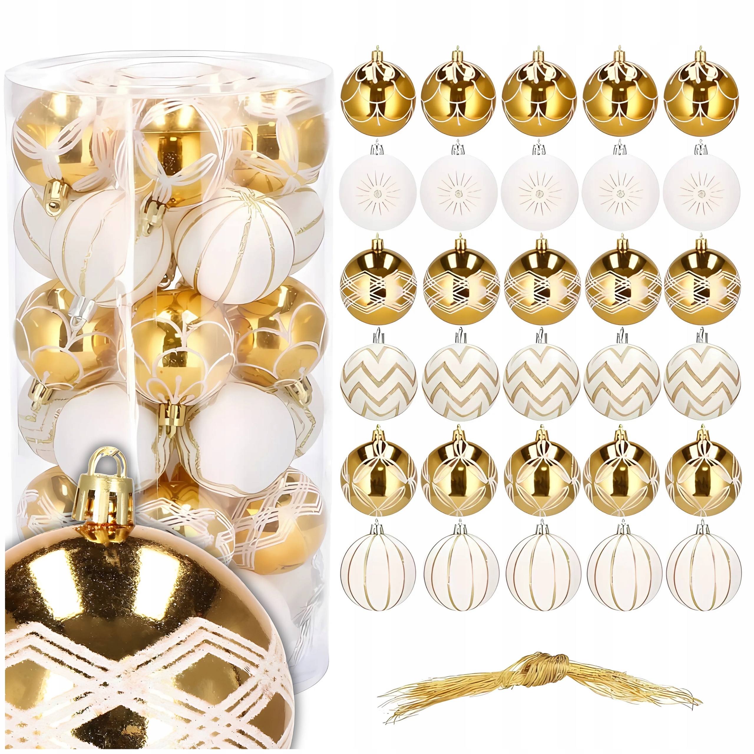 НАБОР 30 шт. РОЖДЕСТВЕНСКИХ ШАРОВ 7см С ЗОЛОТЫМ ОТДЕЛЕНИЕМ