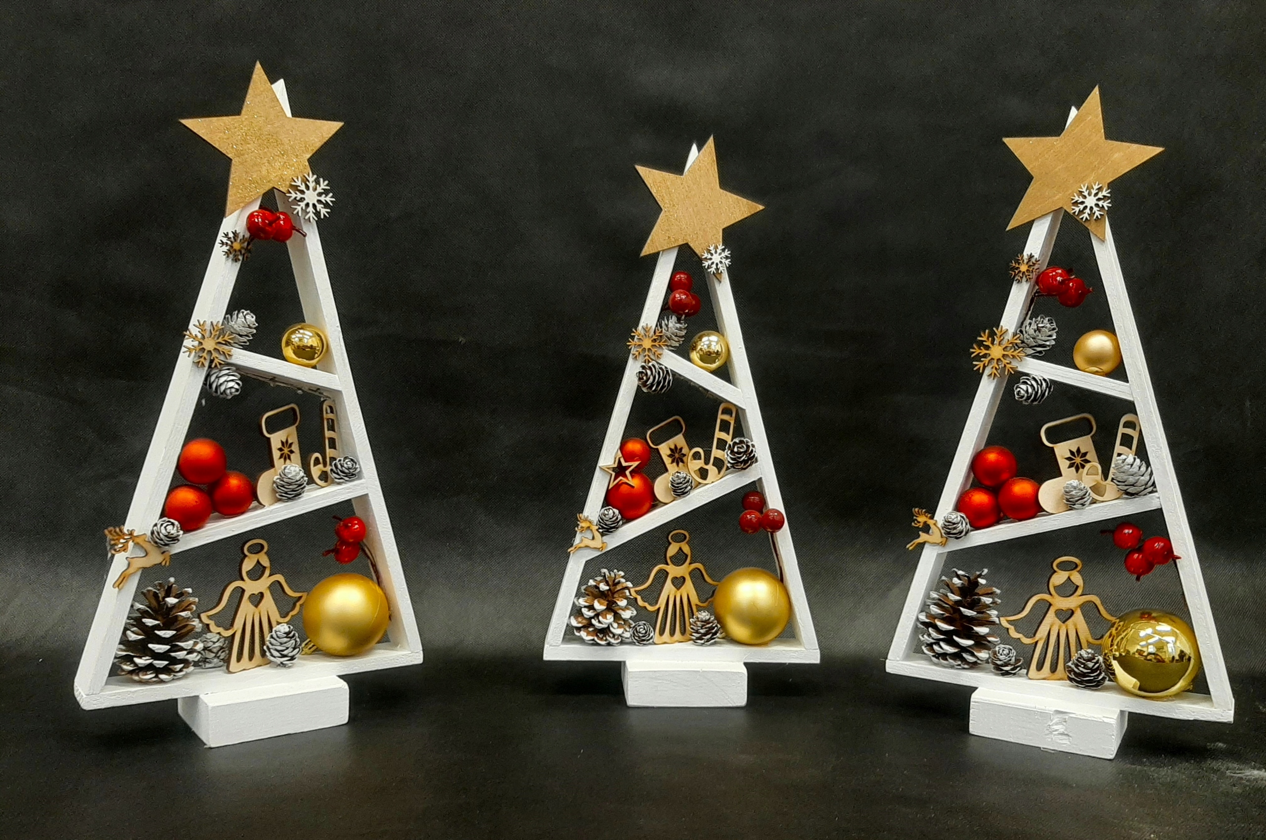 Елки в наличии сразу в красном и красном цвете. золотой