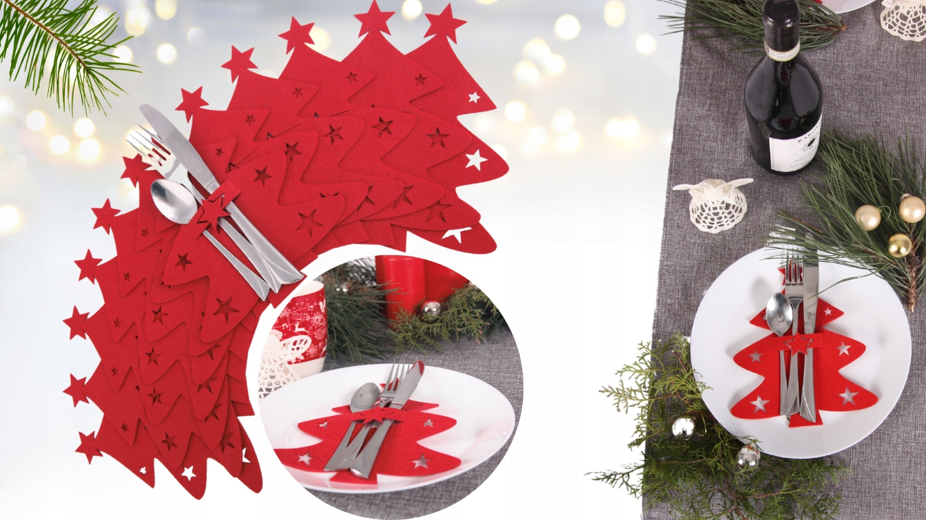 ➡️Чехол для столовых приборов «Рождественская елка», 12 шт., подставка для рождественского стола
